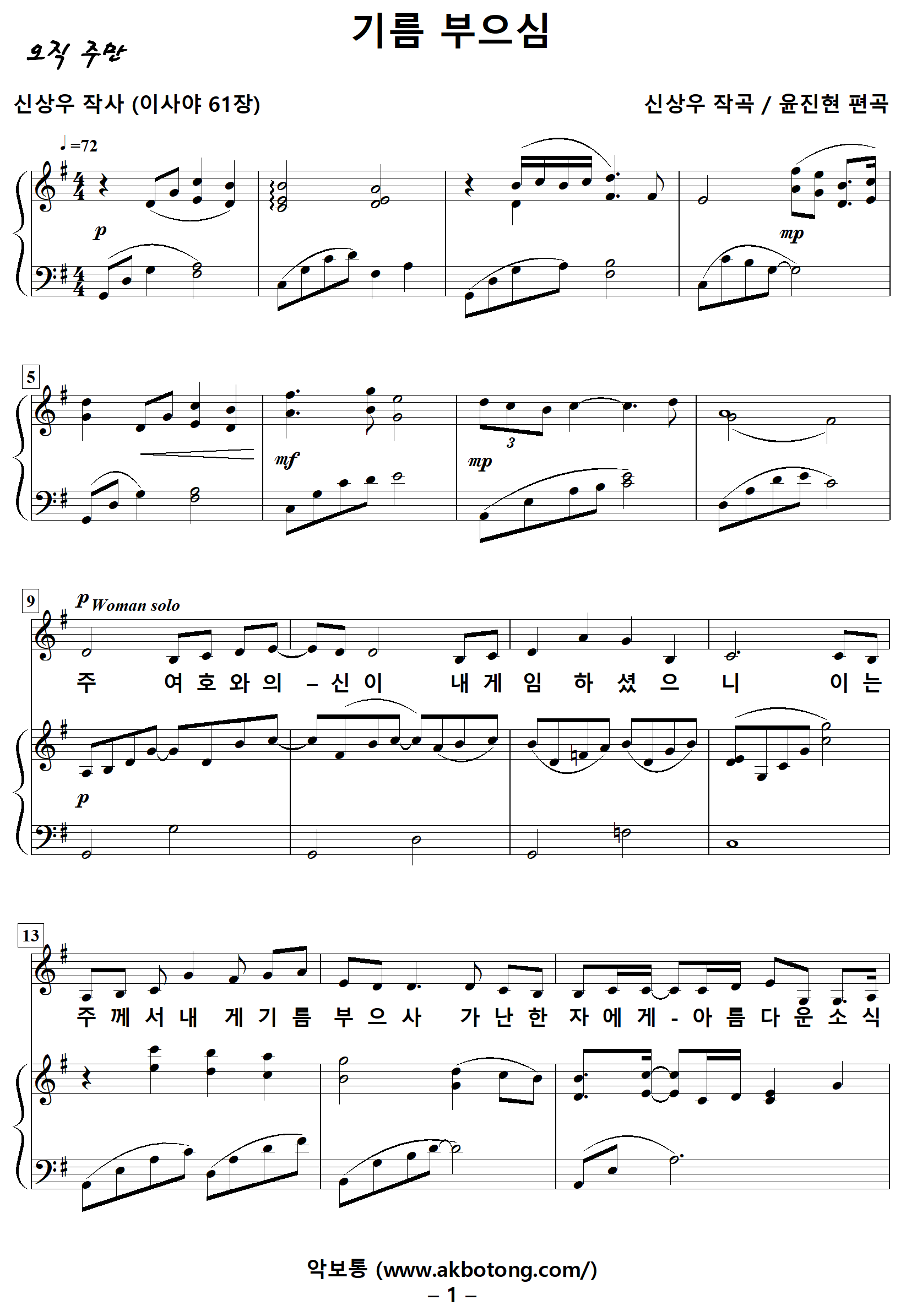 [찬양가사] 기름부으심 / 주여호와의신이 [신상우 작사, 신상우 작곡, 윤진현 편곡]