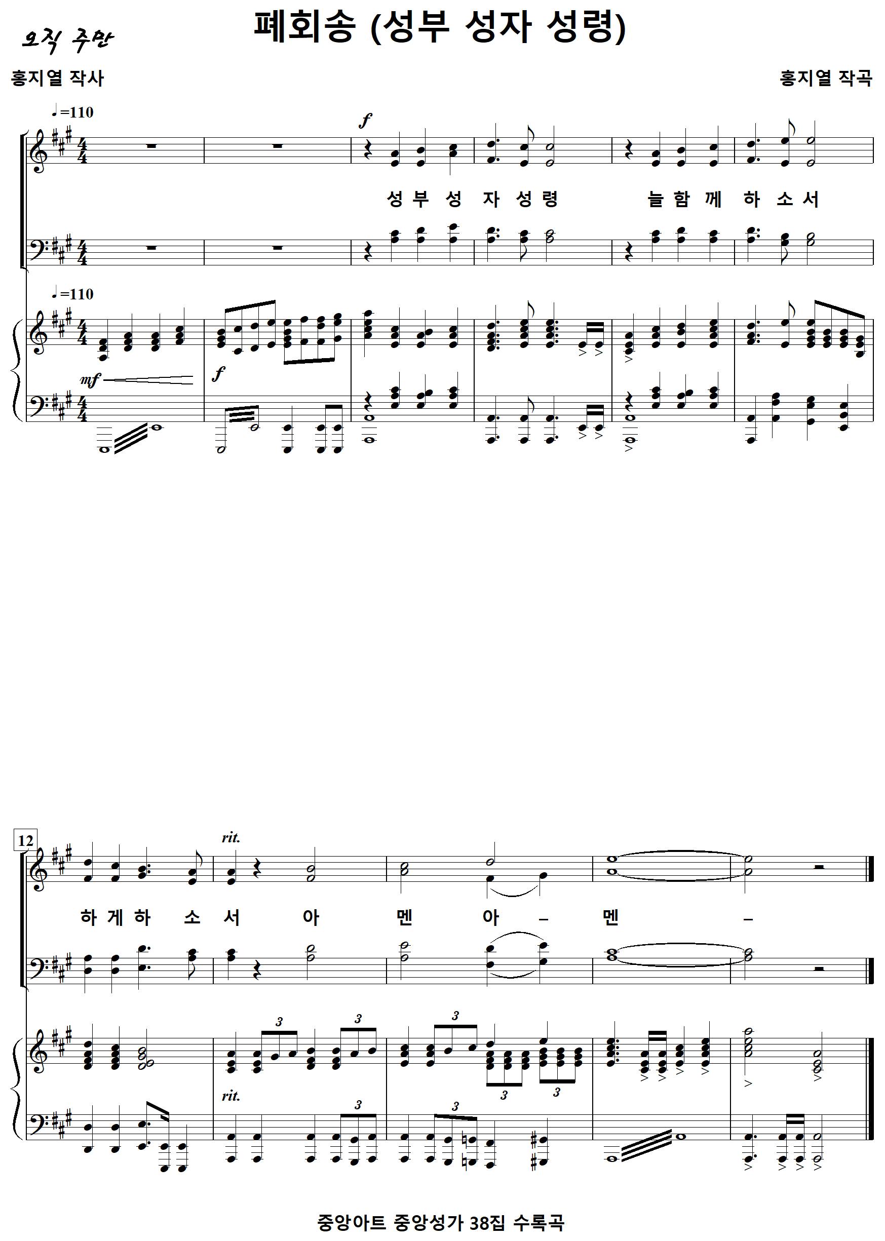 [찬양가사] 폐회송 / 성부성자성령 [홍지열 작사, 홍지열 작곡]
