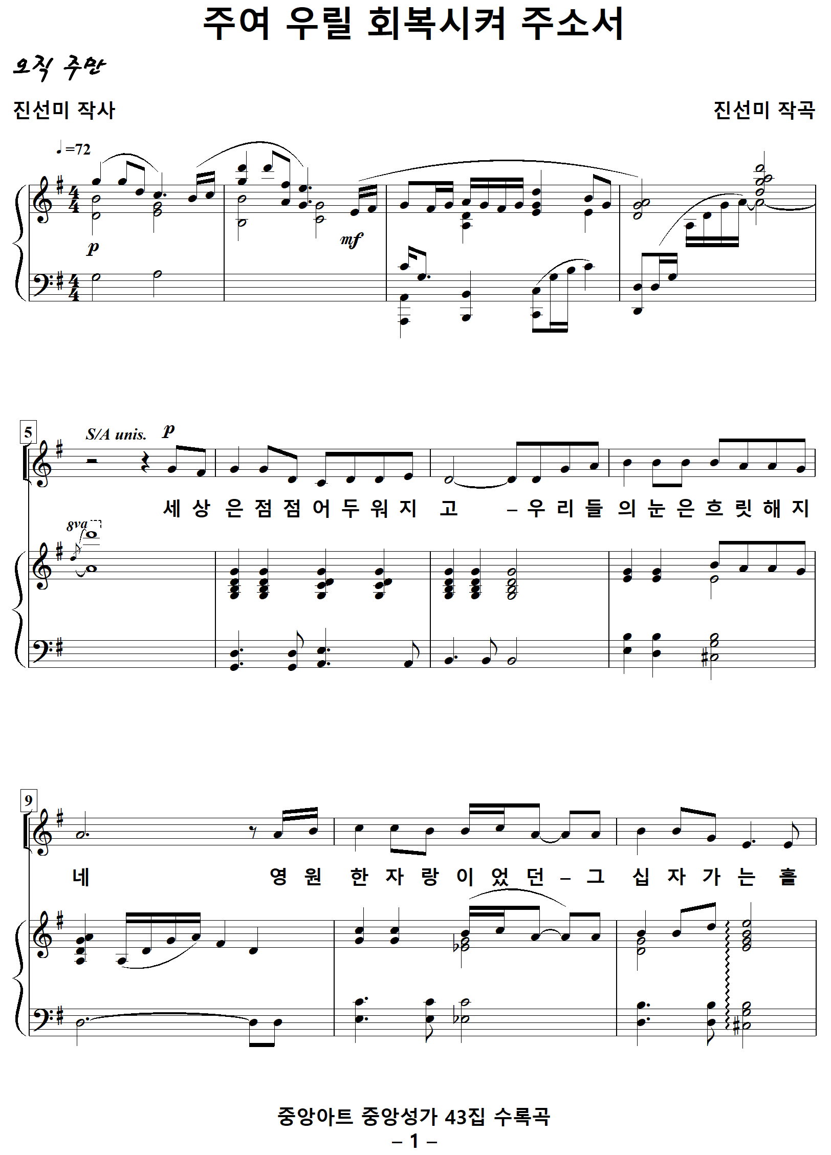 [성가악보] 주여우릴회복시켜주소서 / 세상은점점어두워지고 [진선미 작사, 진선미 작곡]