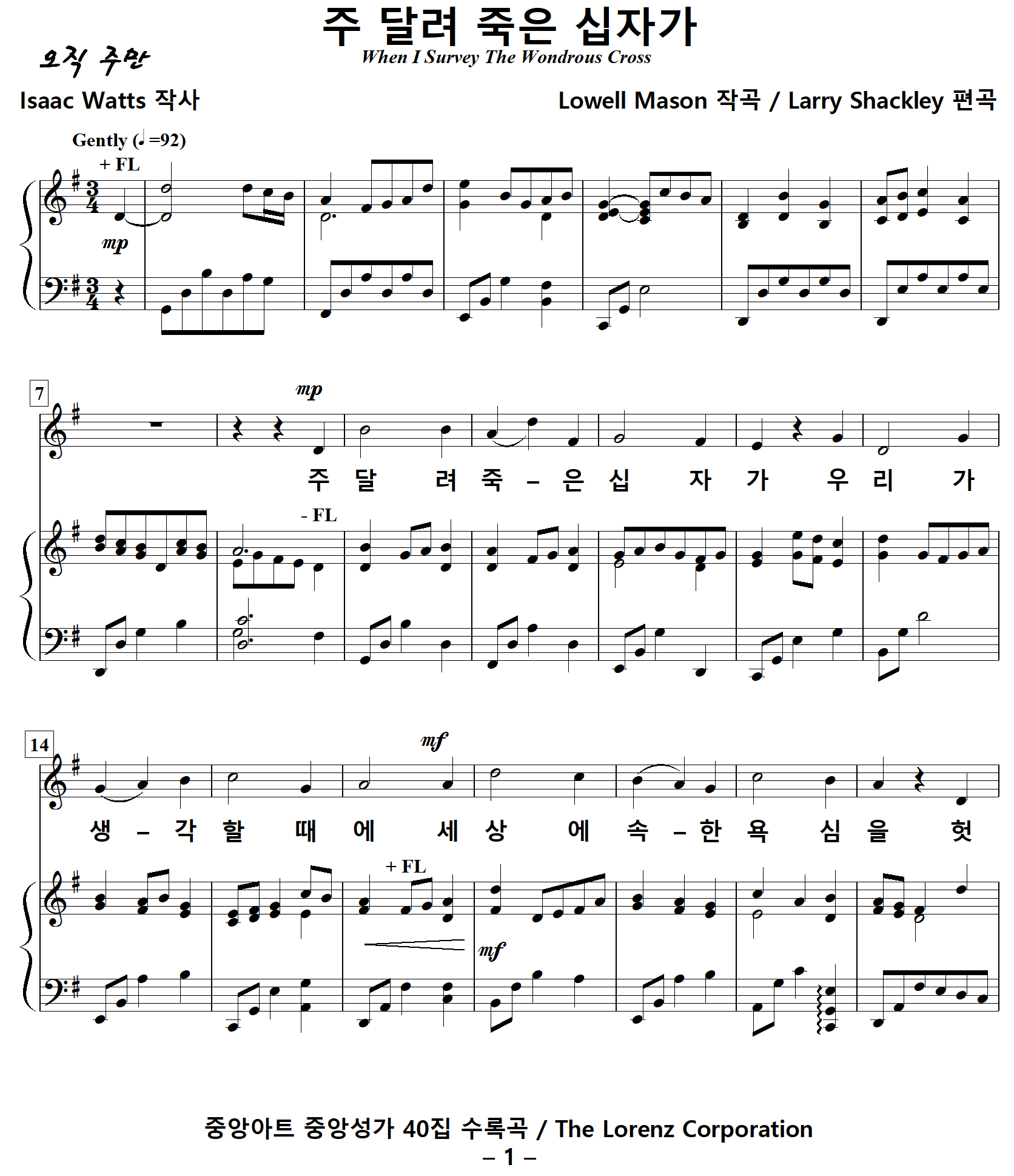 출처 : 중앙아트 중앙성가 40집 수록곡 / The Lorenz Corporation