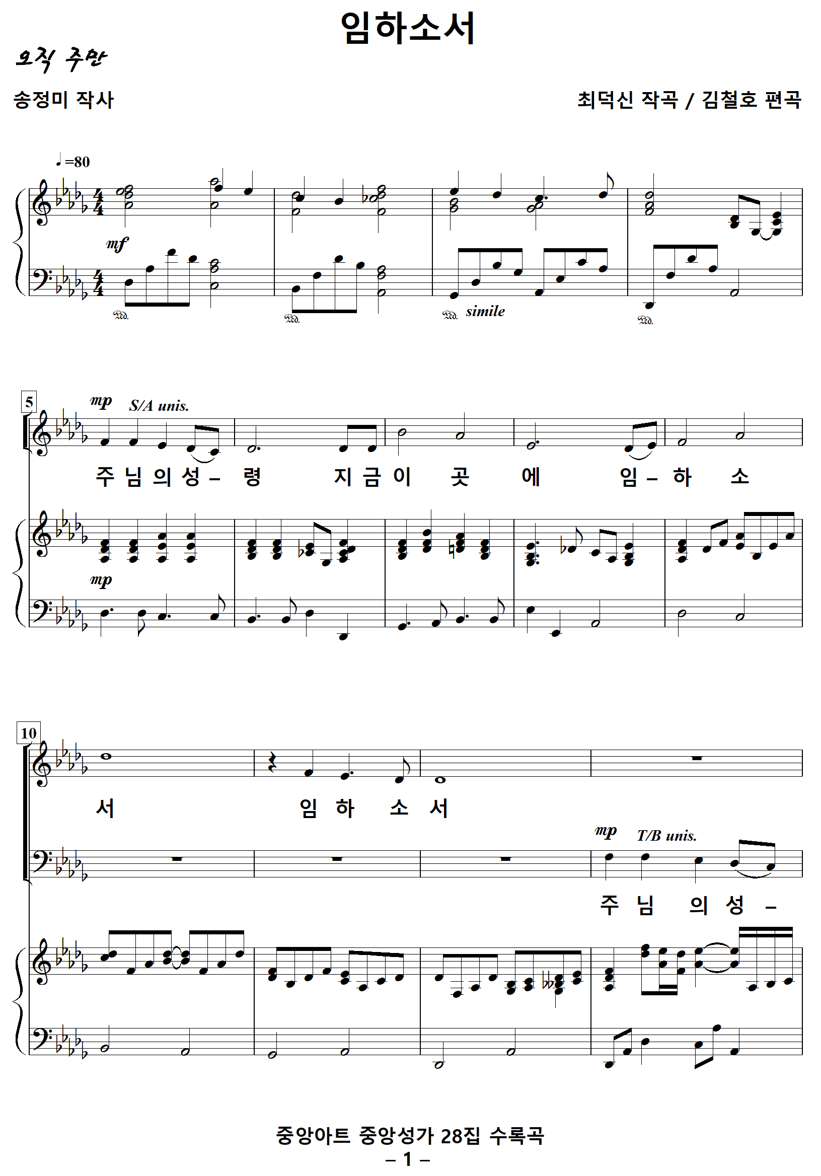 [성가악보] 임하소서 / 주님의성령지금이곳에
