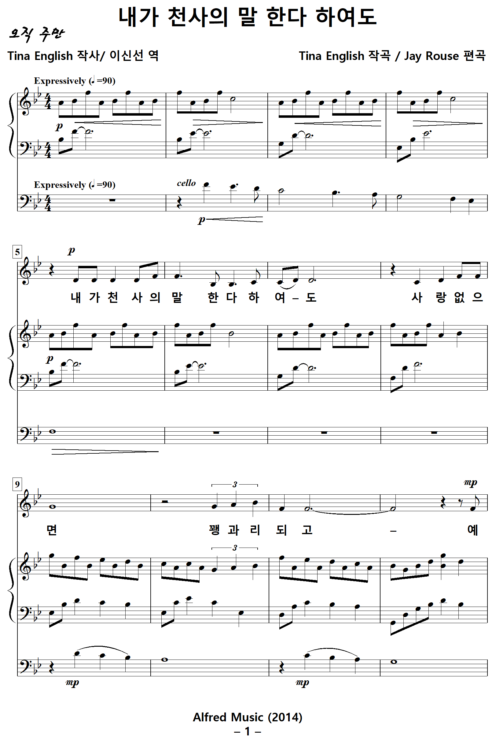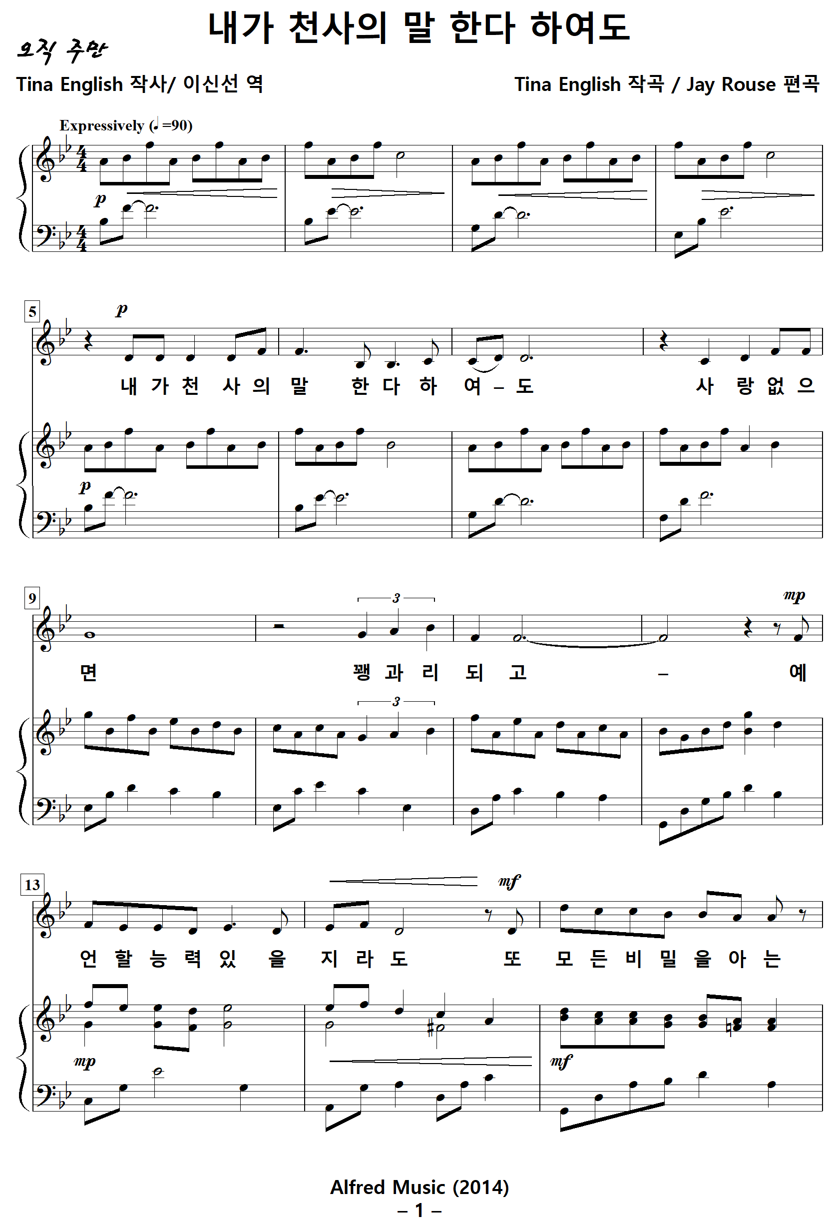 [성가악보] 내가천사의말한다하여도 [Tina English 작사, Tina English 작곡, Jay Rouse 편곡, 이신선 역]