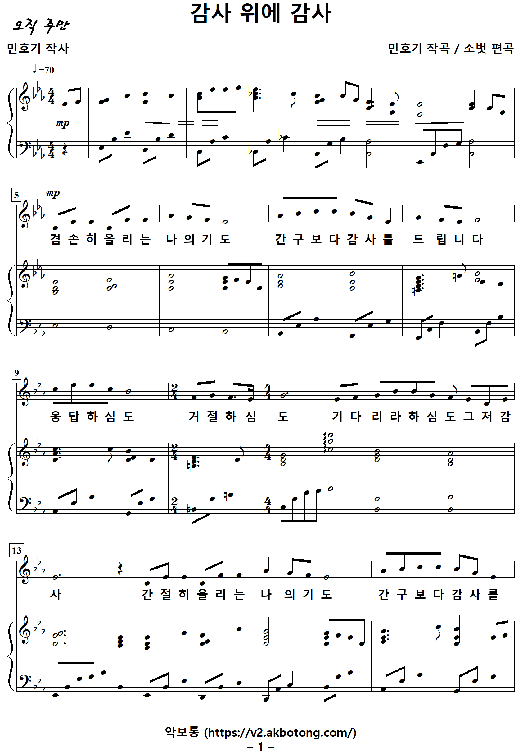 [성가악보] 감사위에감사 / 겸손히올리는나의기도