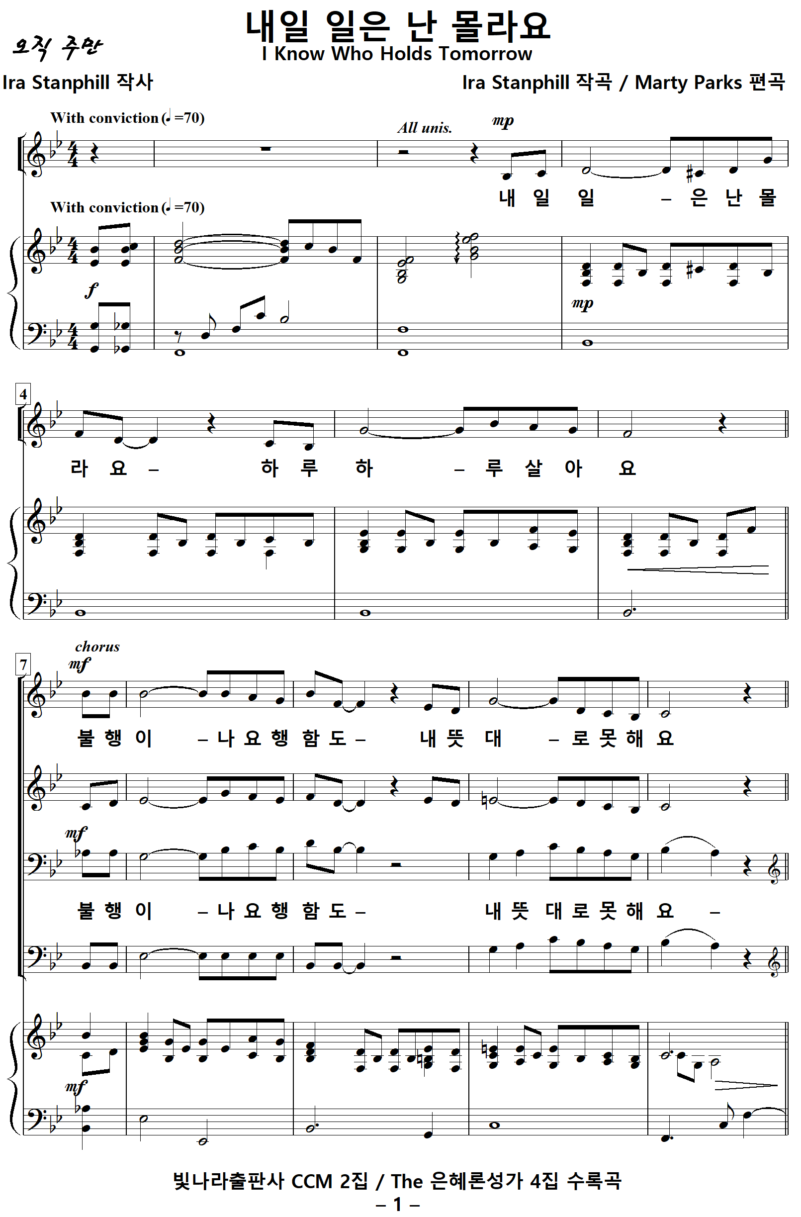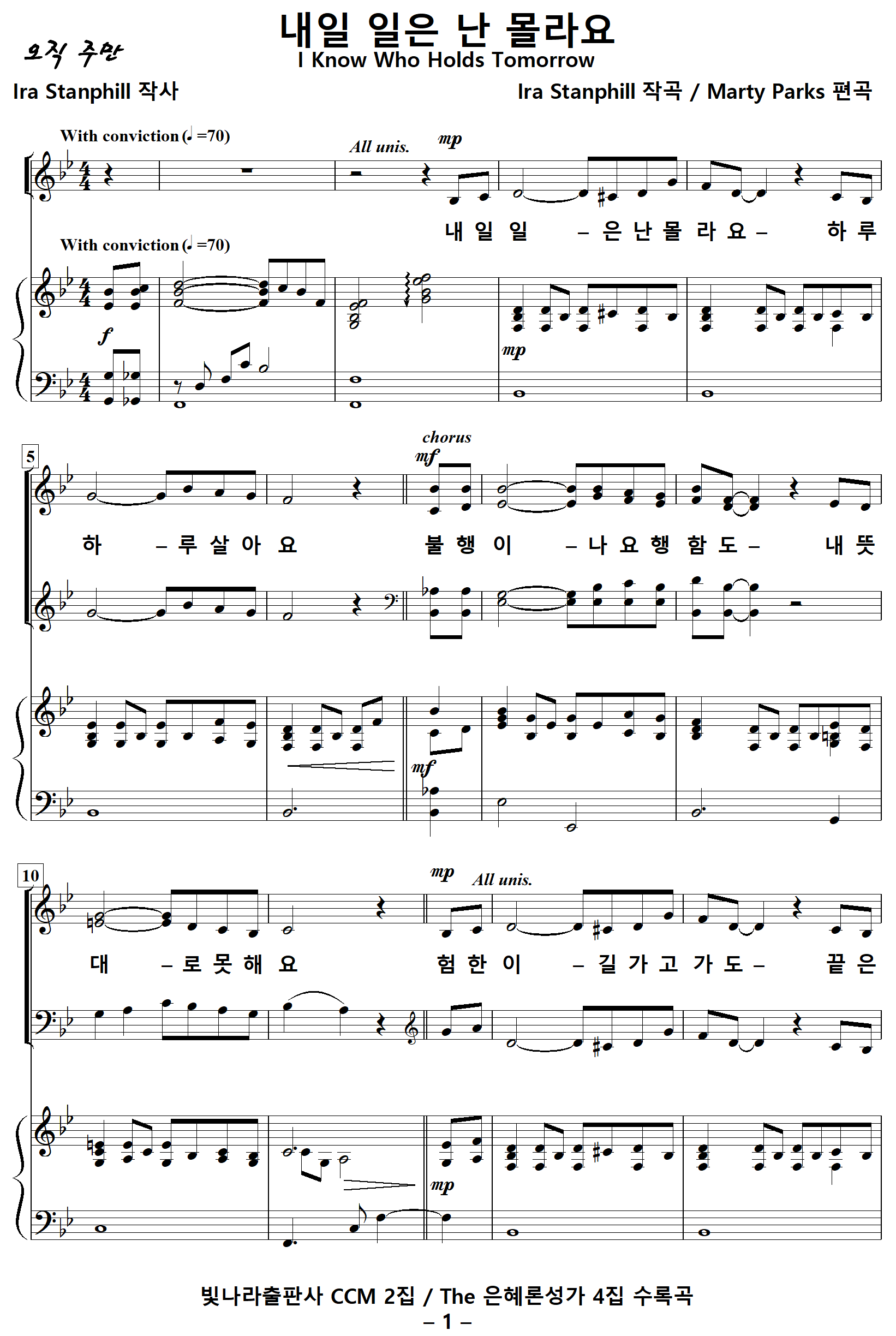 [찬양가사] 내일일은난몰라요 [Ira Stanphill 작사, Ira Stanphill 작곡, Marty Parks 편곡]