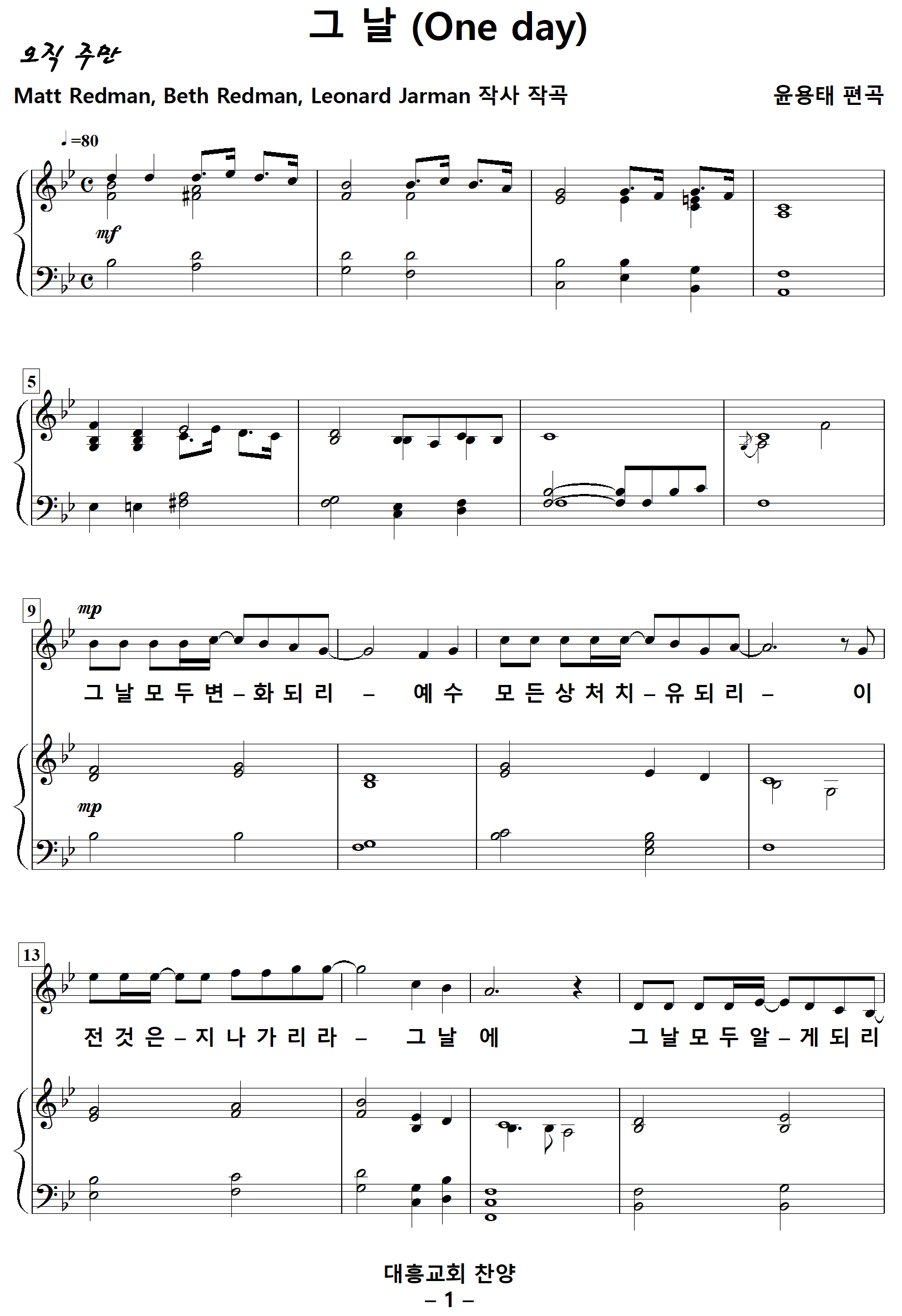 [성가악보] 그날 (One Day) / 그날모두변화되리