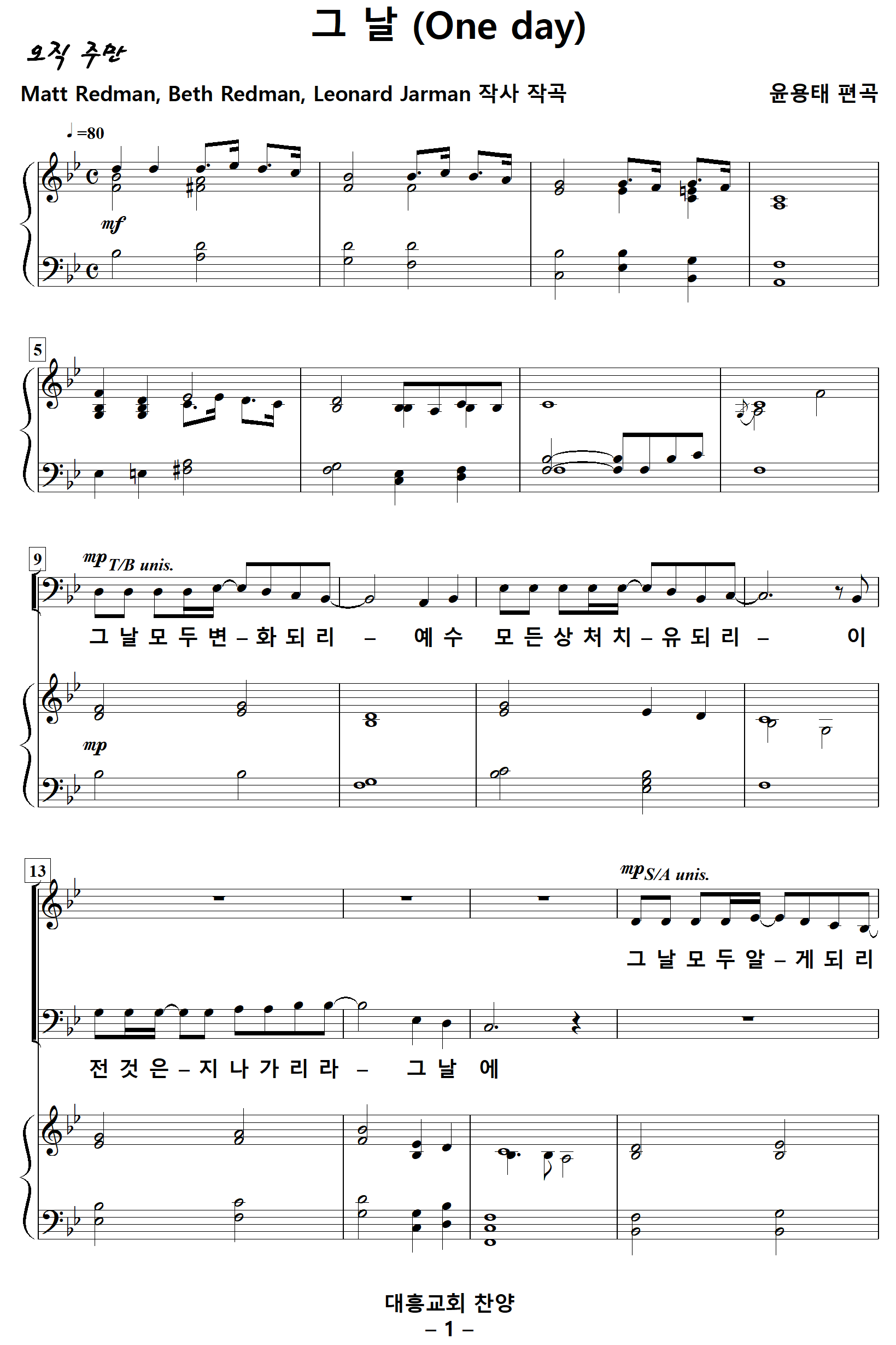 유튜브나 구글에서 "대흥교회 그날"로 검색하면 바로 보이는 찬양대 동영상의 더보기란에 악보 링크주소가 공유되어 있으니 참고하시기 바랍니다.. -