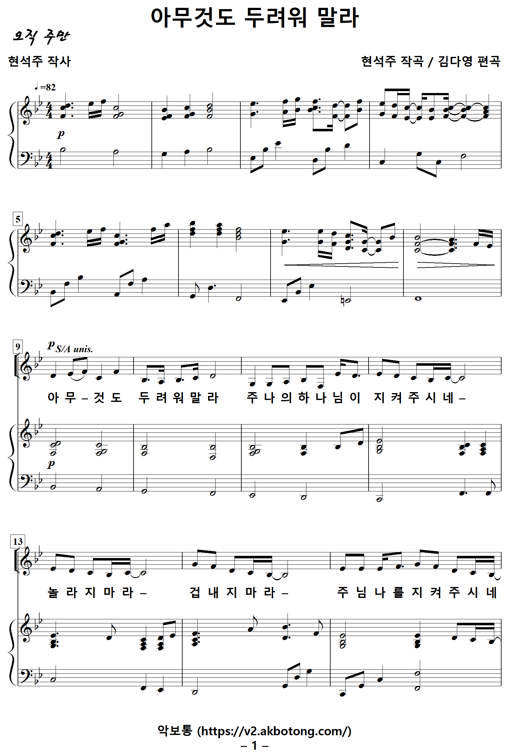 [성가악보] 아무것도두려워말라