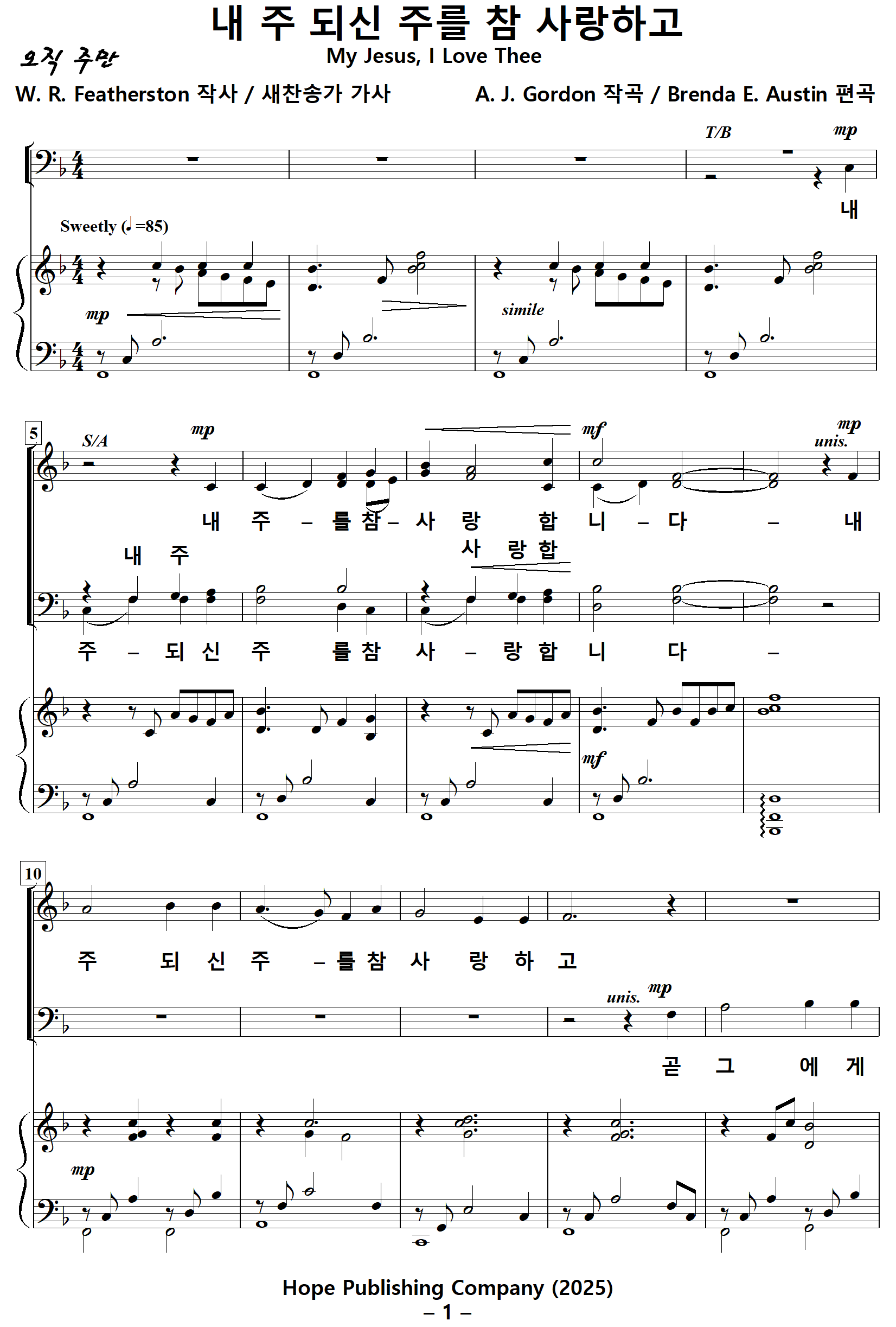 [찬양가사] 내주되신주를참사랑하고 [William R. Featherston 작사, Adoniram J. Gordon 작곡, Brenda E. Austin 편곡]