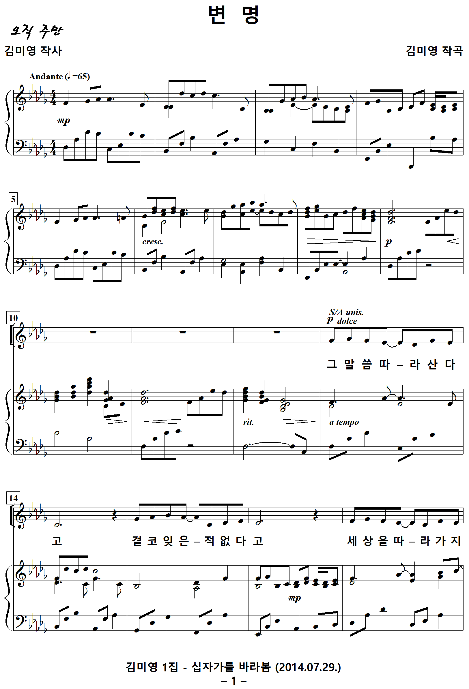 출처 : 김미영 1집 - 십자가를 바라봄 (2014.07.29.)