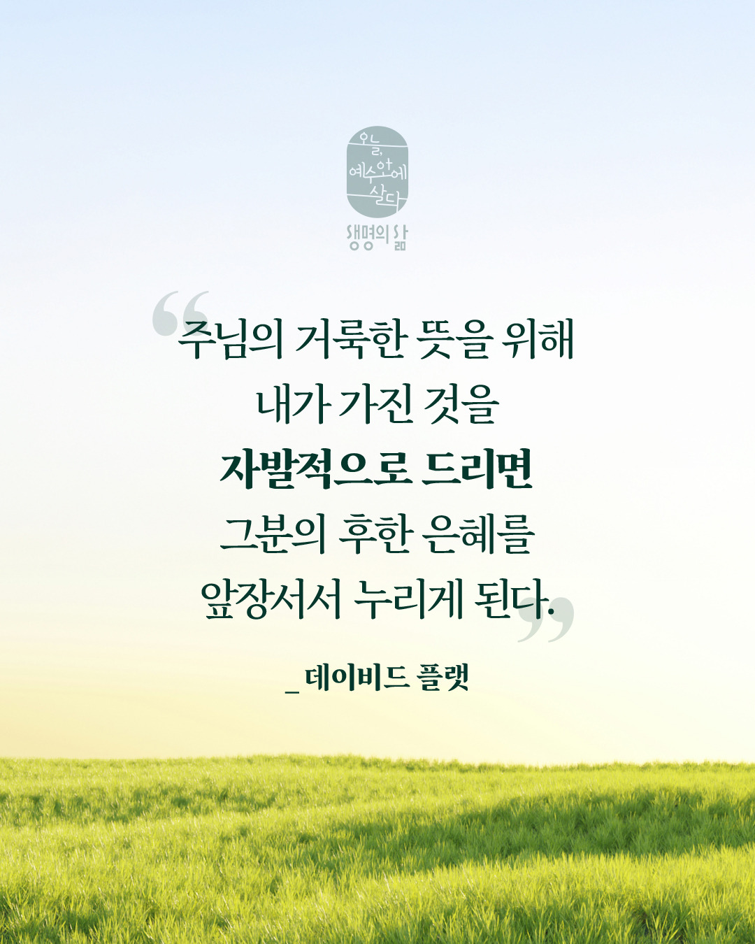 주님의 거룩한 뜻을 위해 내가 가진 것을 자발적으로 드리면 그분의 후한 은혜를 앞장서서 누리게 된다. - 데이비드 플랫