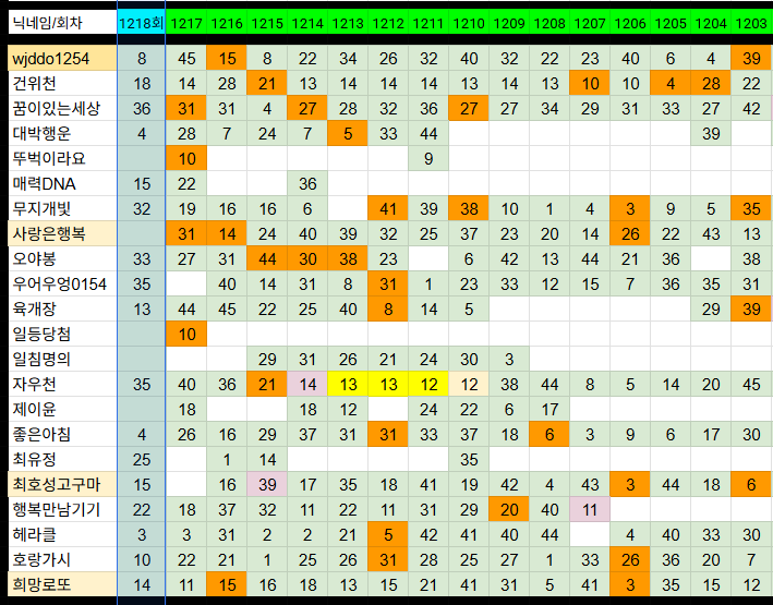 1218회 제외1수 집계표 중간점검(우엉우엉0154님까지 반영) 작성자행운이따르는나무|작성시간26.04.02|조회수506 목록 댓글 9 글자크기 작게가 글자크기 크게가 다음검색 현재 게시글 추가 기능 열기 북마크 공유하기 신고 센터로 신고 댓글 댓글 9 댓글쓰기 답글쓰기 댓글 리스트 작성자헤라클 | 작성시간 26.04.03 감사합니다 작성자호랑가시 | 작성시간 26.04.03 감사합니다. 작성자꿈이있는세상 | 작성시간 26.04.04 감사합니다 작성자☆干支男★ | 작성시간 26.04.04 감사합니다 작성자도서관에서공부중 | 작성시간 26.04.04 감사합니다 댓글 전체보기