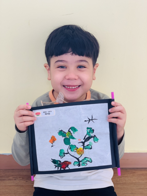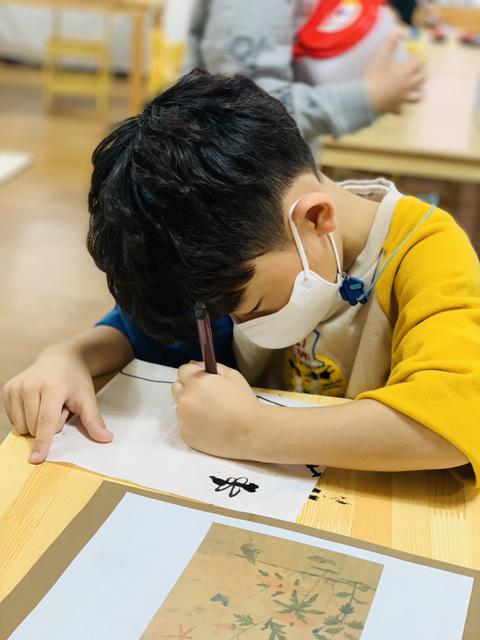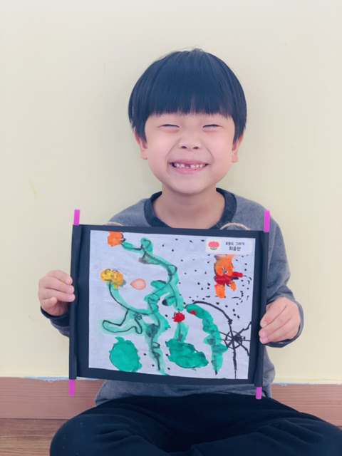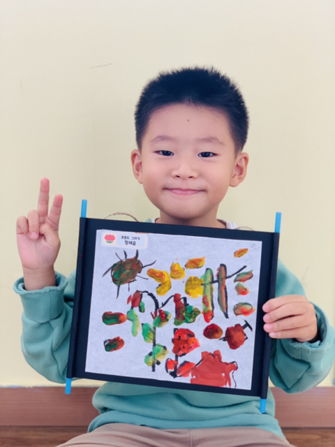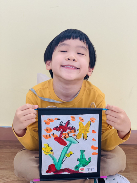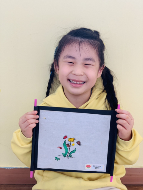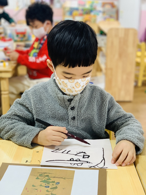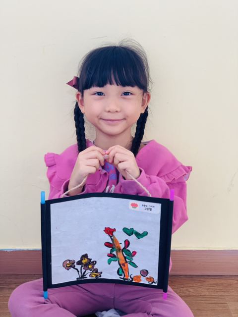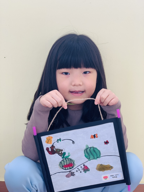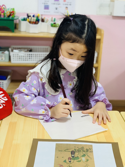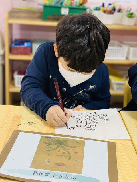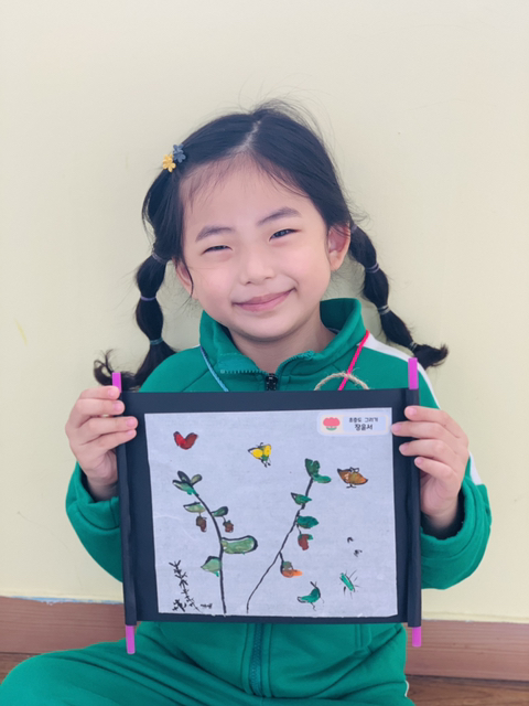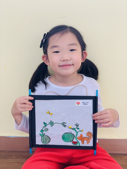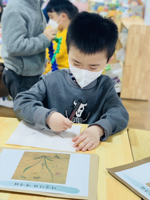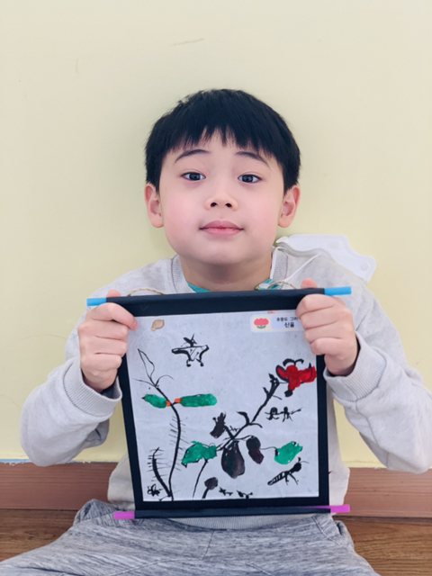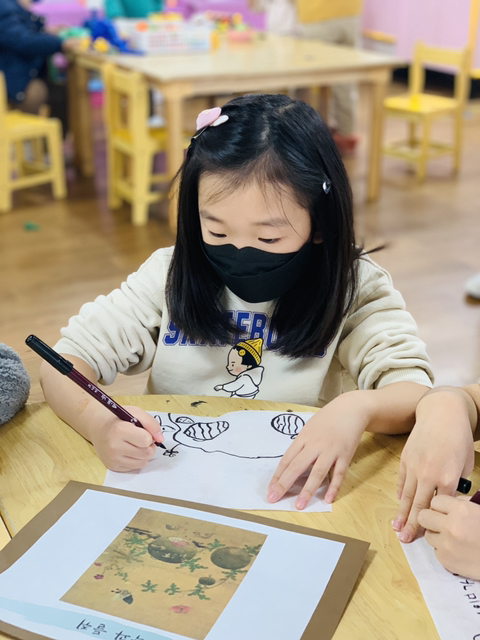 신사임당에 대해 이야기 나누며 ‘초충도’를 감상해 보았어요. 그림에서 볼 수 있는 특징과 미술 요소를 찾아보며 명화에 대한 이해와 흥미를 높인 후 붓펜을 이용해 수묵화 기법으로 그림을 그리고 그 위에 채색을 하며 ‘초충도’를 그림으로 표현해 보았어요.^^