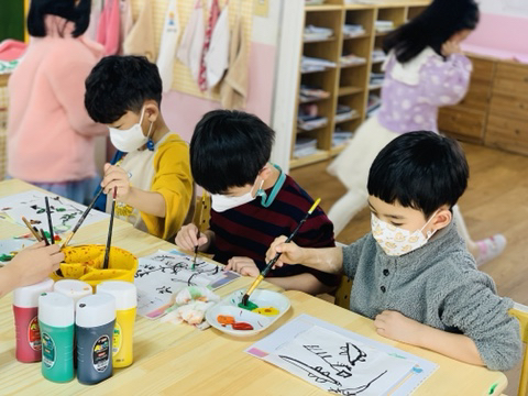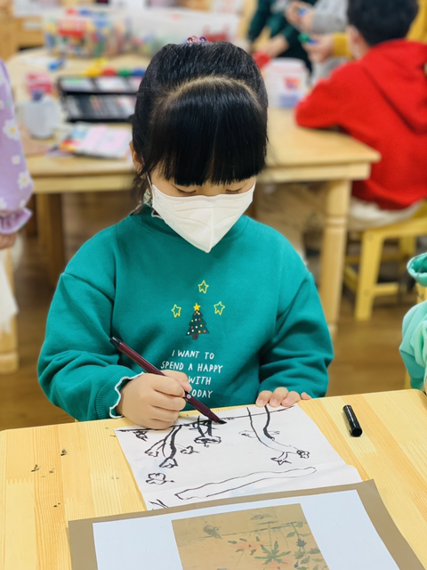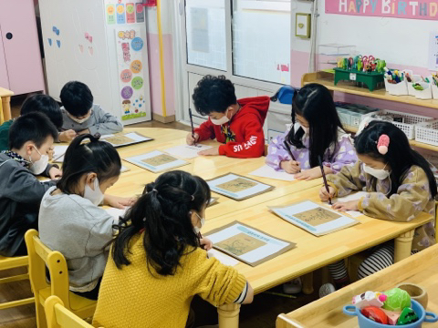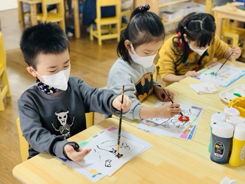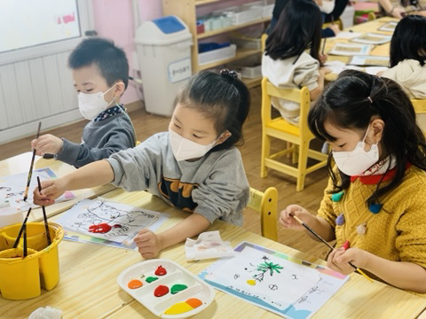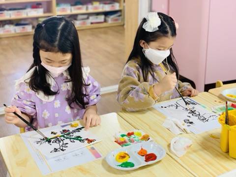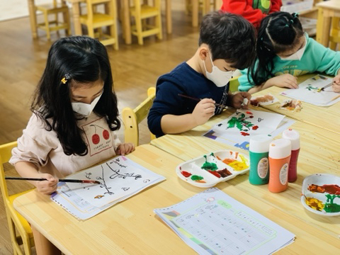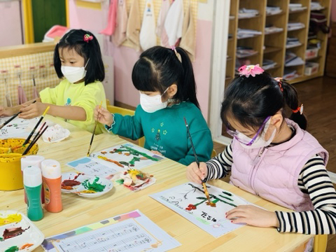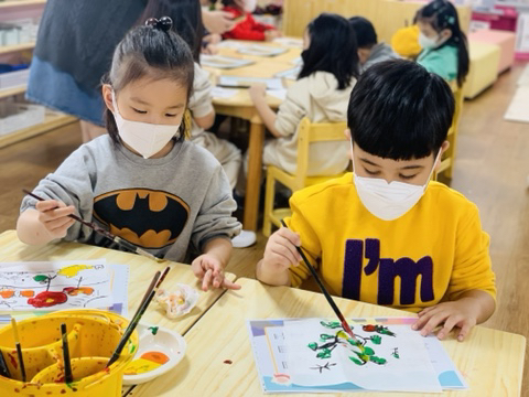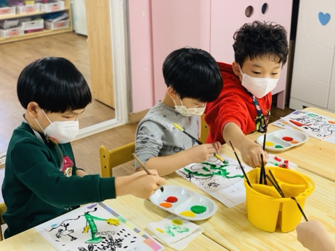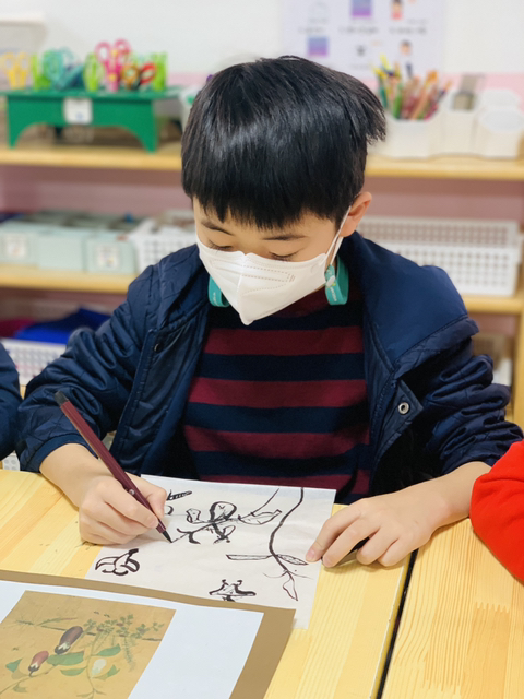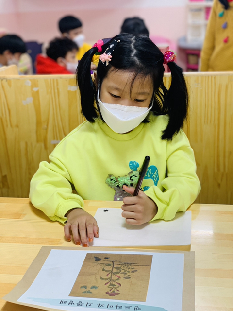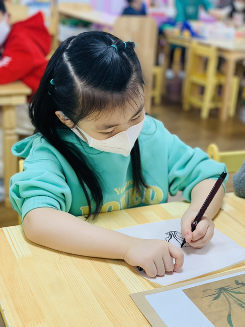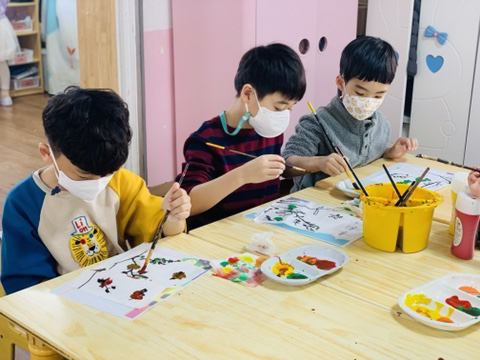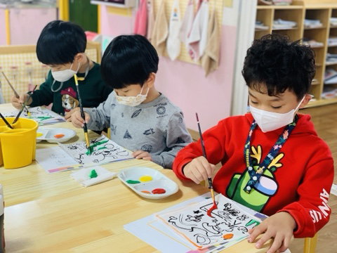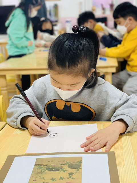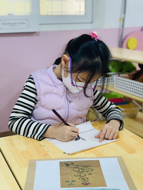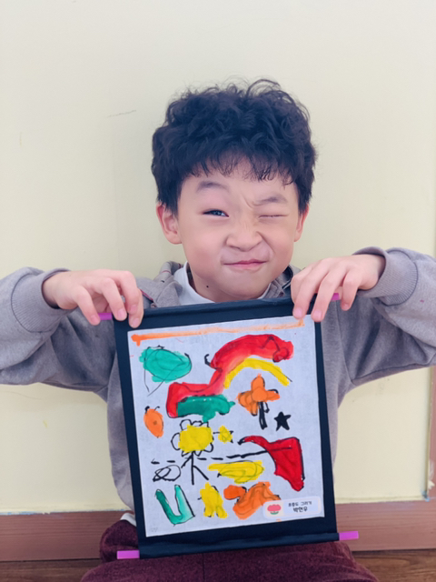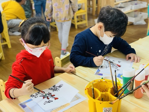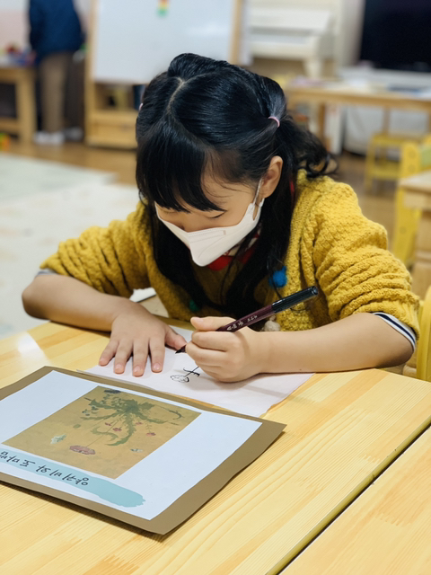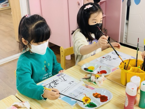 신사임당에 대해 이야기 나누며 ‘초충도’를 감상해 보았어요. 그림에서 볼 수 있는 특징과 미술 요소를 찾아보며 명화에 대한 이해와 흥미를 높인 후 붓펜을 이용해 수묵화 기법으로 그림을 그리고 그 위에 채색을 하며 ‘초충도’를 그림으로 표현해 보았어요.^^