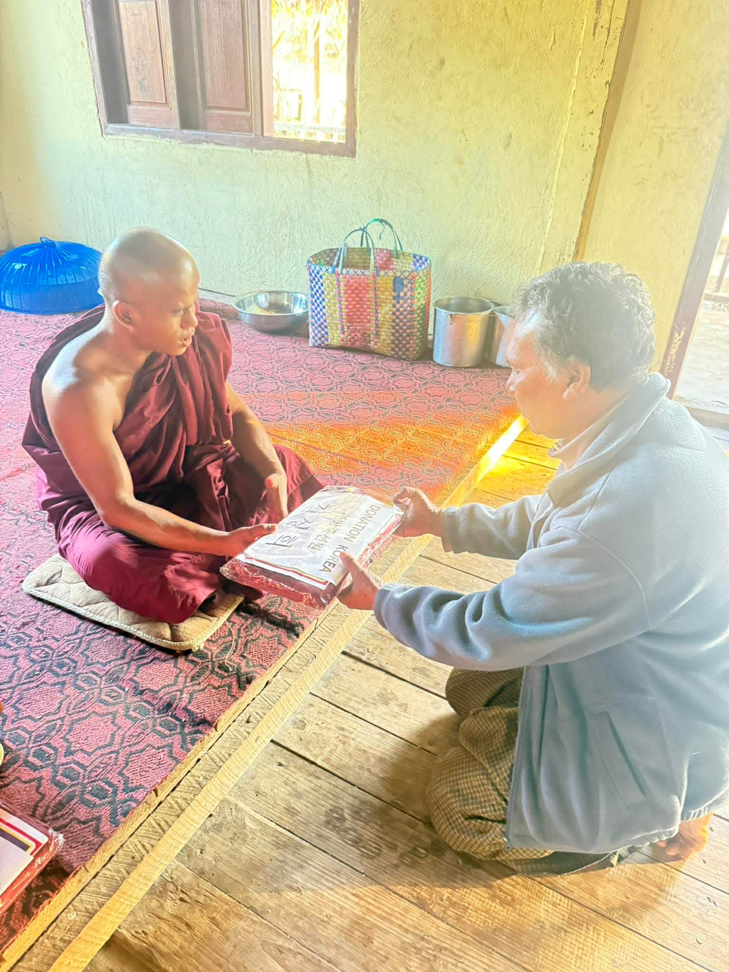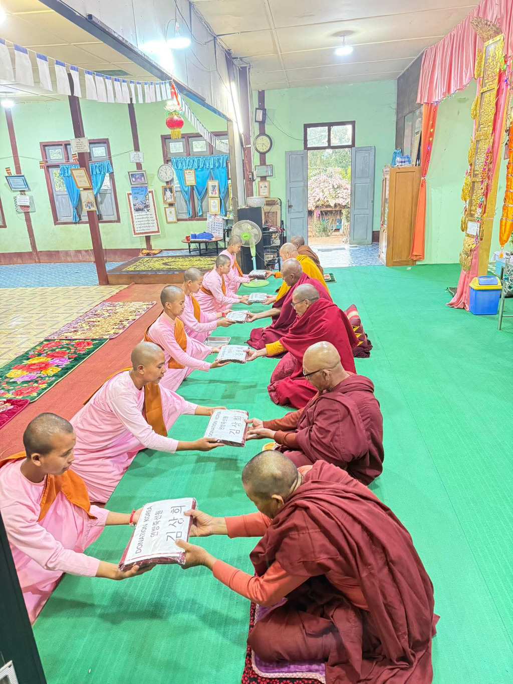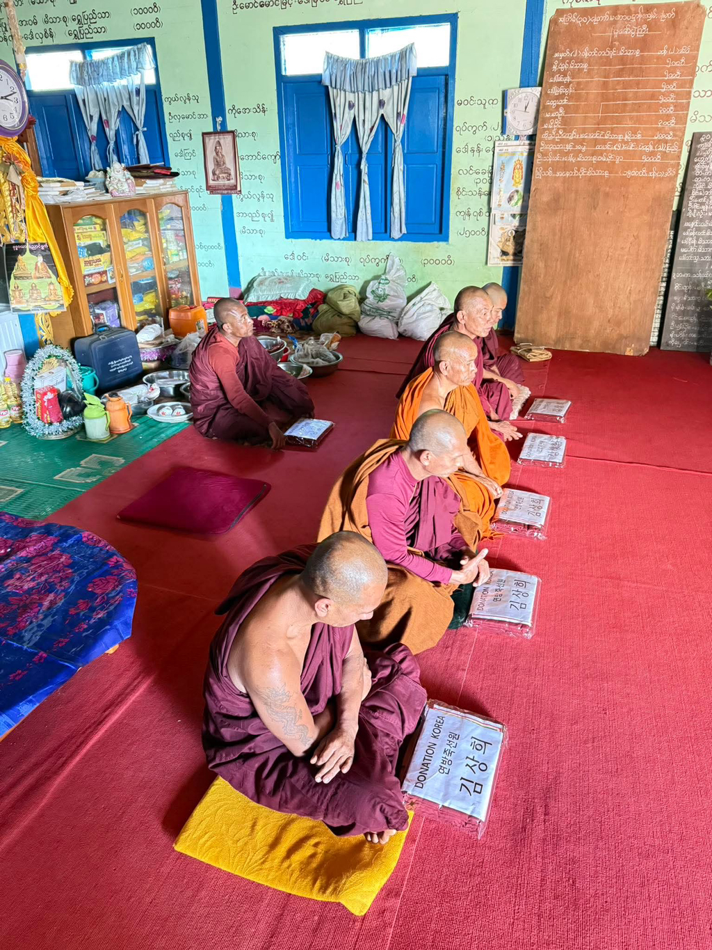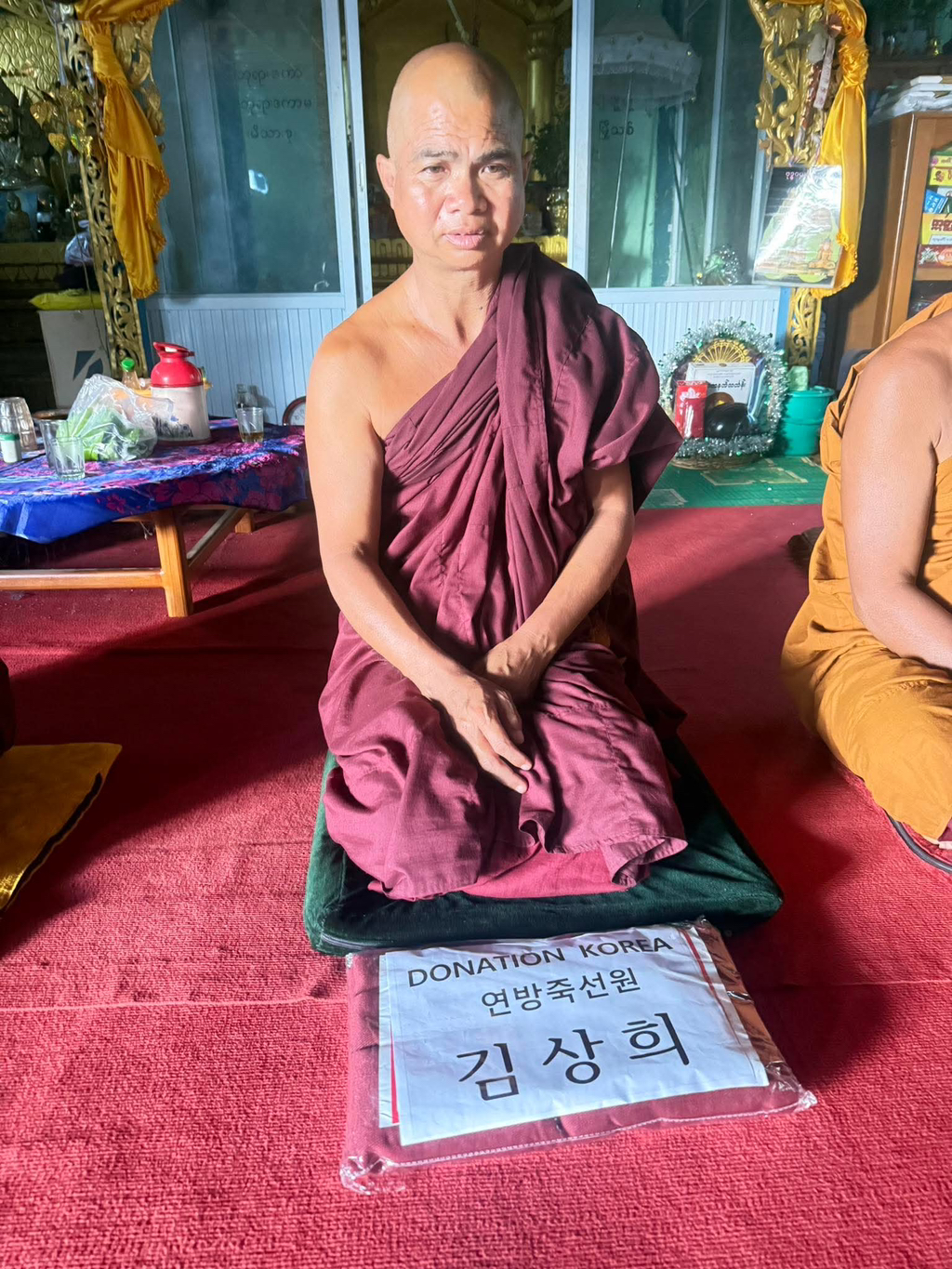 따웅지 사원 주변에 살고 있는 법랍 10년 이상되는 스님들께 보시를 했습니다.