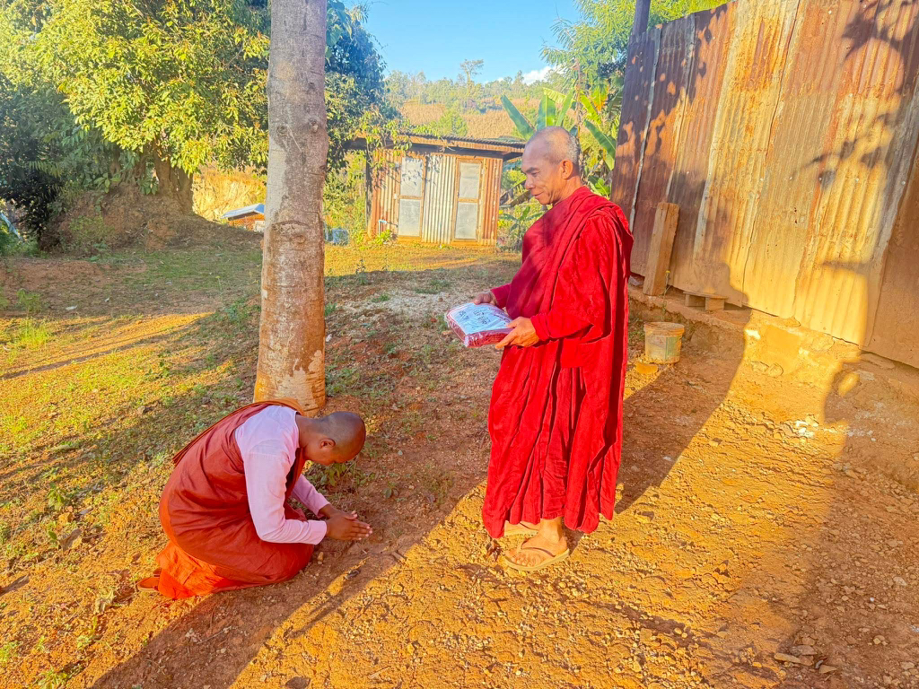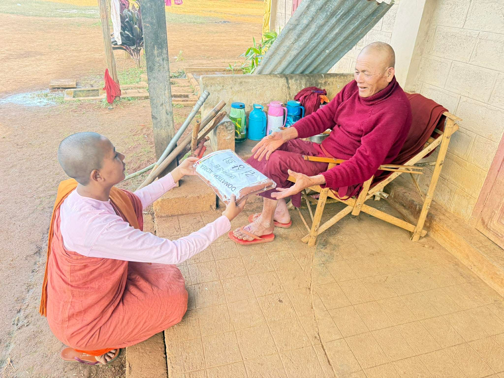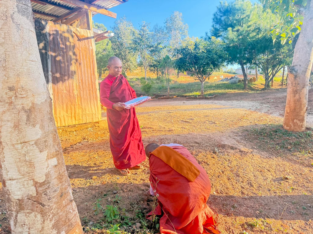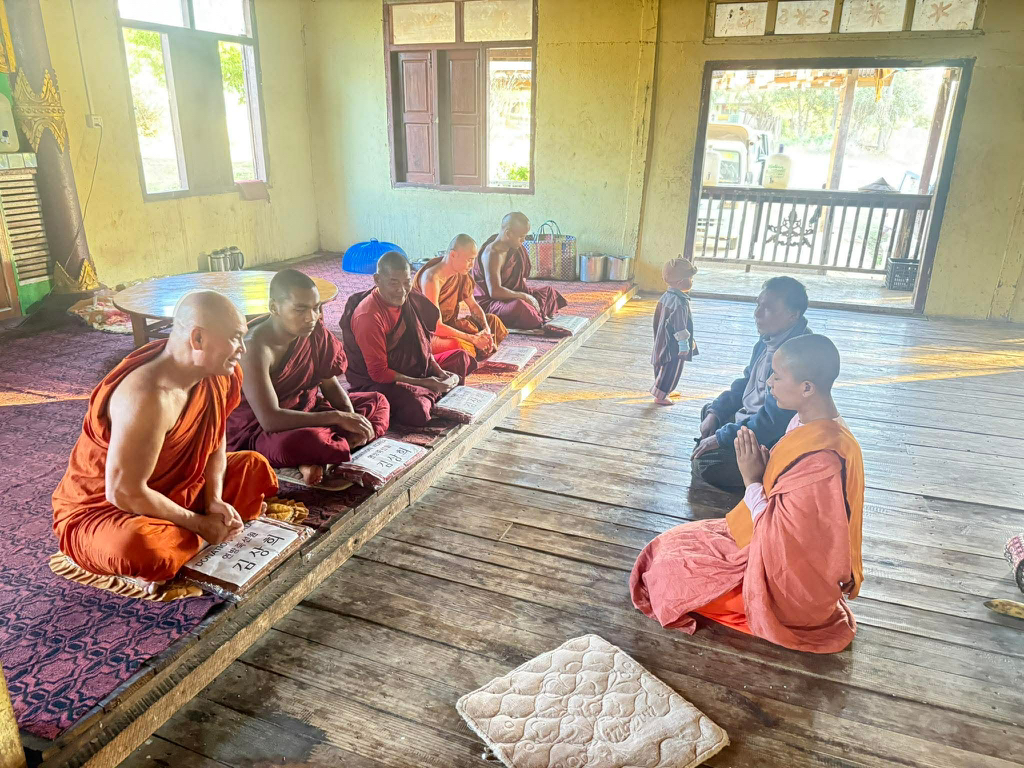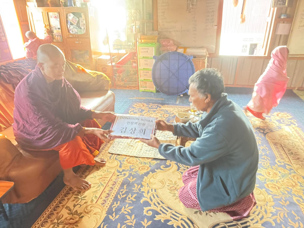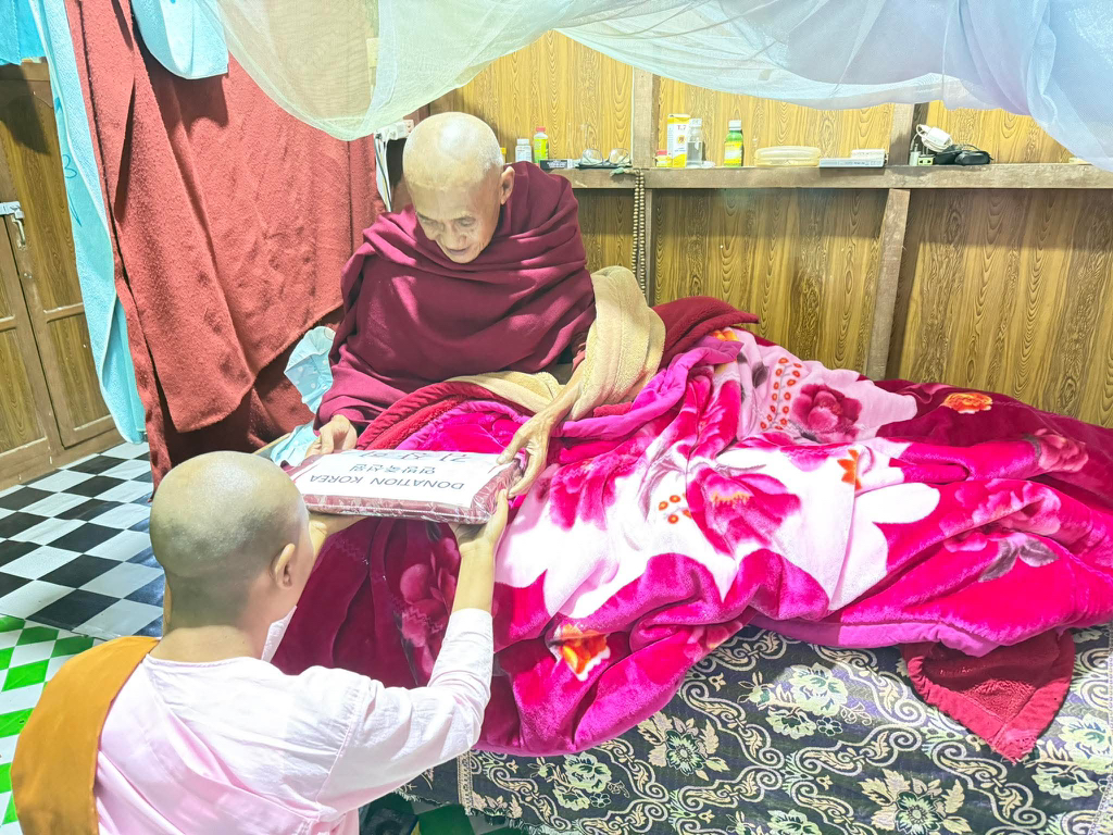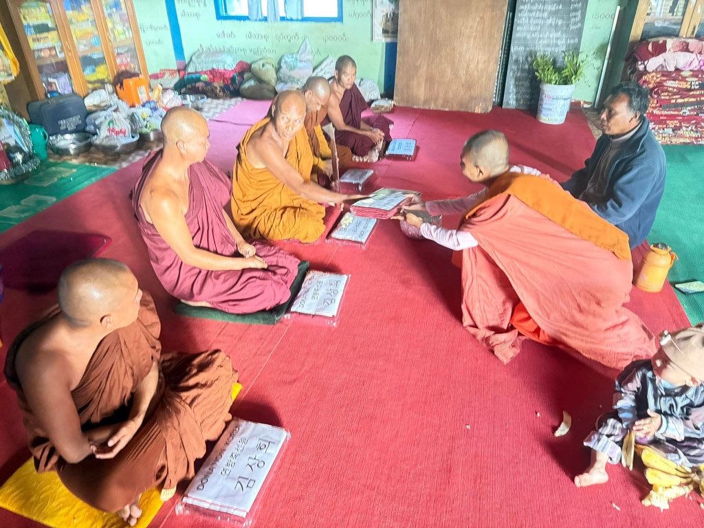 따웅지 사원 주변에 살고 있는 법랍 10년 이상되는 스님들께 보시를 했습니다.