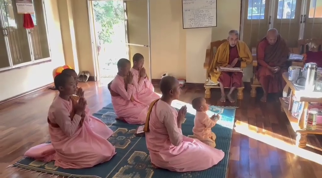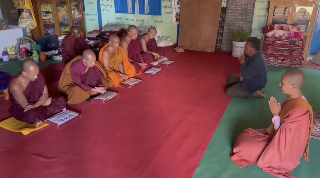 총테를 보시 받은 스님께서 보시자의 안녕을 위해 축원하고 있습니다