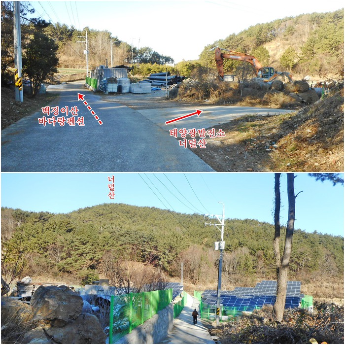 태양광 발전소 펜스 사이를 지나서 산자락에 이르며 좌 우 양쪽으로 산길이 열립니다. 어느쪽으로