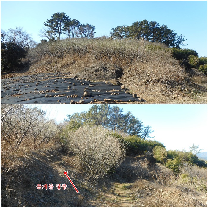 바로 능선상에 조성된 경작지로 이어지네요. 경작지 울타리 사잇길을 따라 정상쪽으로 진행하니