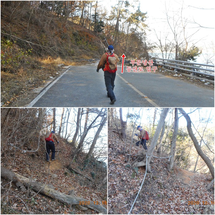 픽스 로프가 설치된 등산로 들머리가 나오는지라 이리로 올라붙으며 부문당산 산행에 들어가게