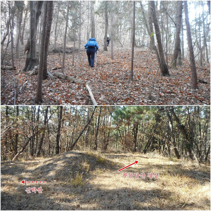 200m정도 떨어져있는 부문당산 정상을 찍고 되돌아와서 좌측 능선길로 해서 신박산으로 이어