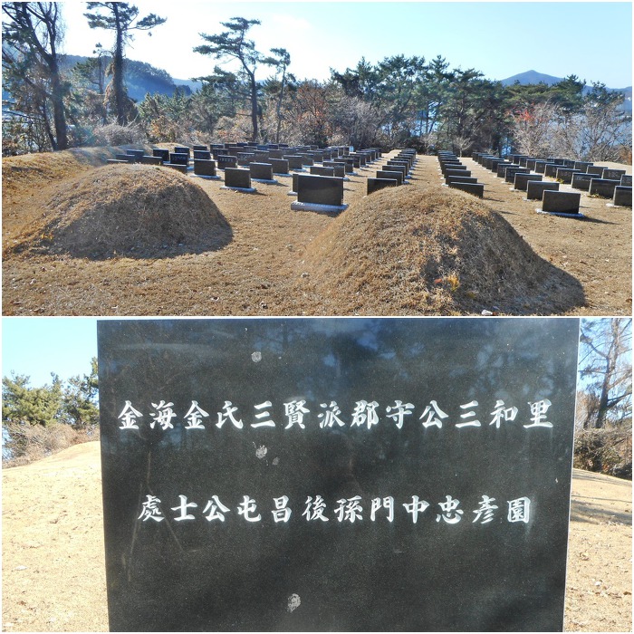맞은편 경작지를 가로질러 내려가니, 잠시후 엄청 규모가 크고 조성을 잘 해놓은 '김해김씨 삼현파'의
