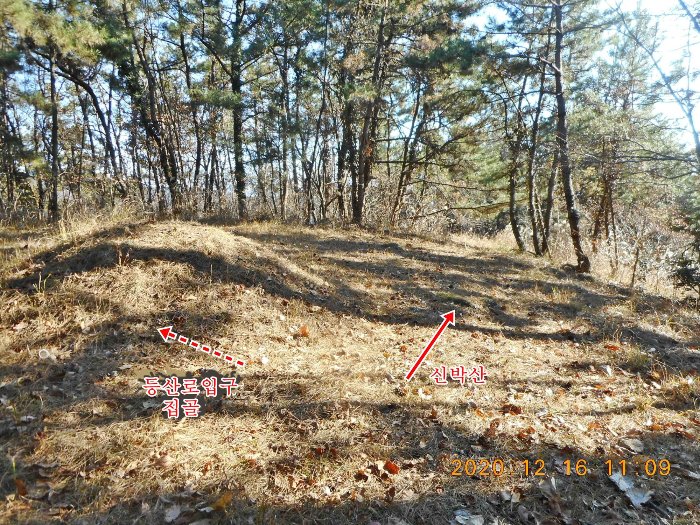 점심 식사를 한 공동묘지에서 20여분만에 신박산 고스락(101.4m)으로 올라섭니다.인증샷을 하고는