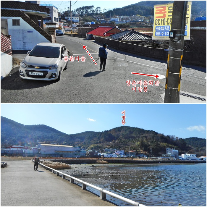 잠시후 양촌마을로 내려서게 되는데, 전면으로 마지막으로 답사하게될 이방봉이 저만치 포구 너머로