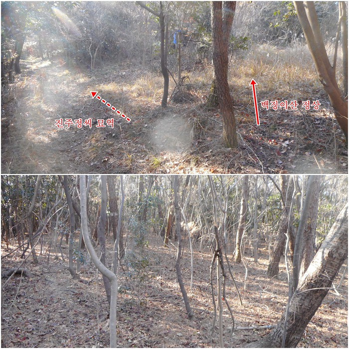 묘역 우측 산사면으로 평탄하게 이어지는 묘짓길을 따르노라면, 잠시후 백징이산 정상에서