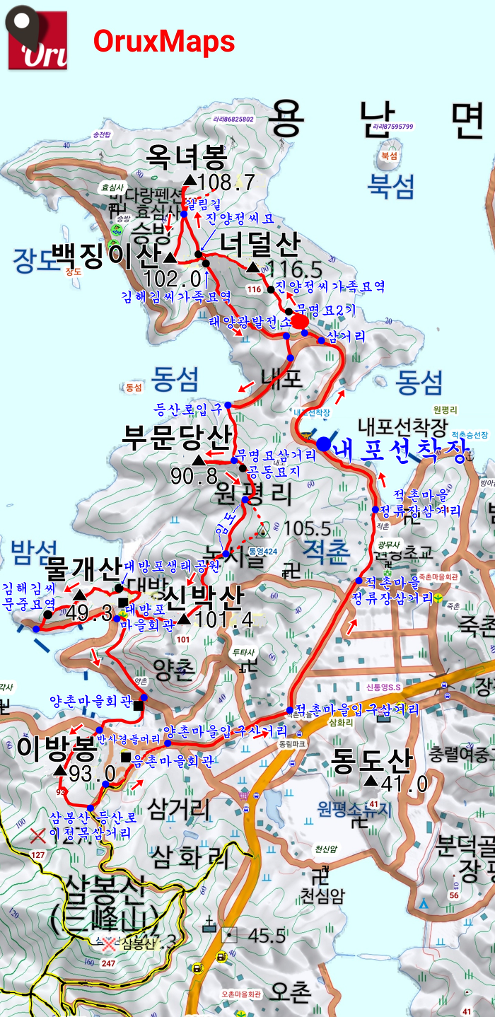 [스크랩] 통영 너덜산(116.5m)-옥녀봉(108.7m)-백징이산(102.0m)-부문당산(90.8m)-신박산(101.4m)-물개산(49.3m)-이방봉(93.0m)
