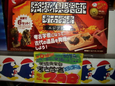 화석 발굴 키트. 화석이나 고대 문화유산쪼가리가 들어가 있는 석고뎅이와 조각칼, 붓 등이 들어있어 마치 직접 발굴하는 듯한 느낌을 주는 학습용 장난감이다. 프렌즈의 로스나 우리 아들마냥 화석이라면 환장하는 사람들에게 강추!(돈키호테)