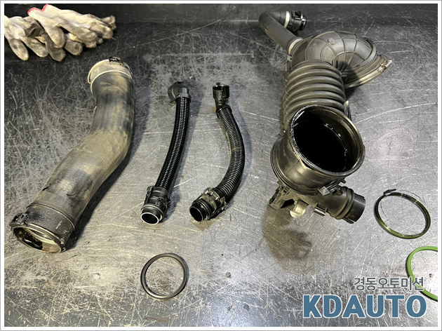 -터보호스 수리 및 터보 인테이크 파이프 오링 교환,