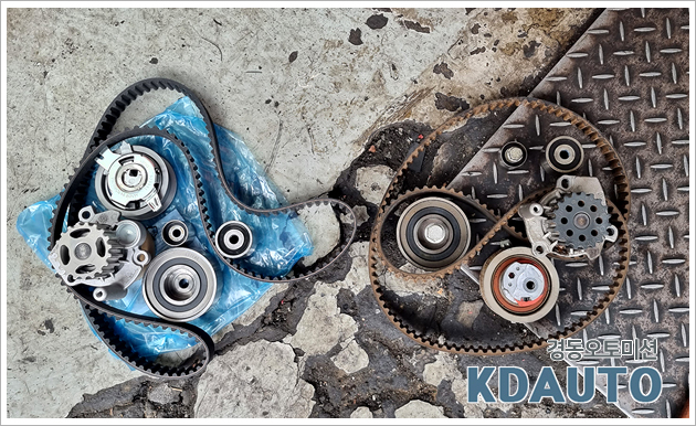 -타이밍벨트 세트 및 외부벨트 세트 교환합니다.