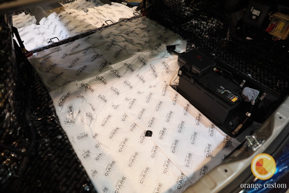 흰색으로 부착된 부분이 순정 흡음재입니다.