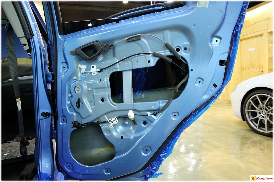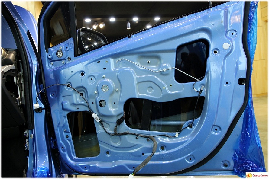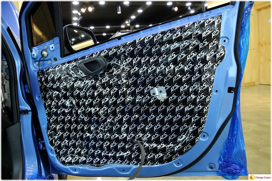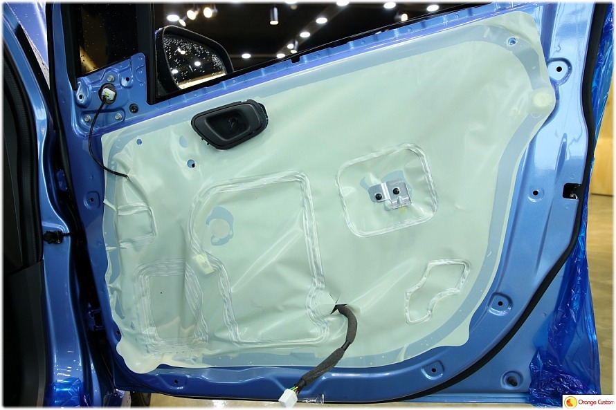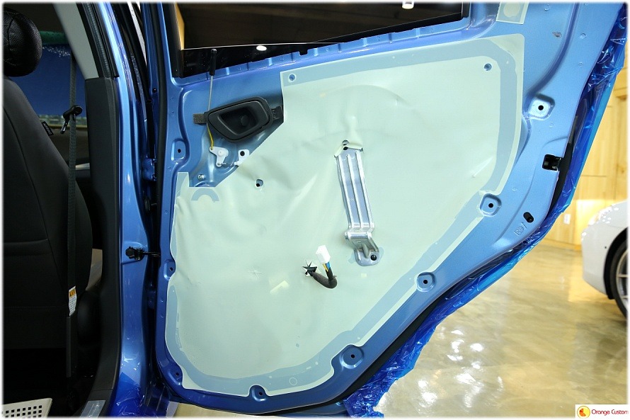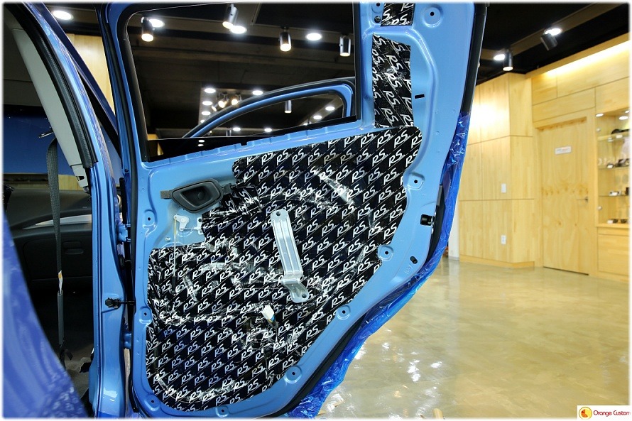 방진매트를 도어 전체에 깔끔하게 발라주어 철판에 강성을 확보합니다.