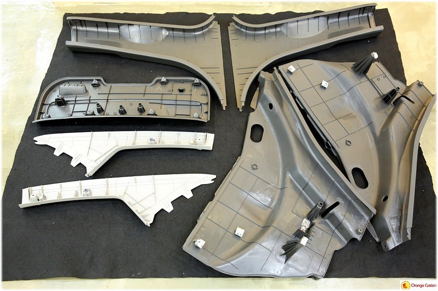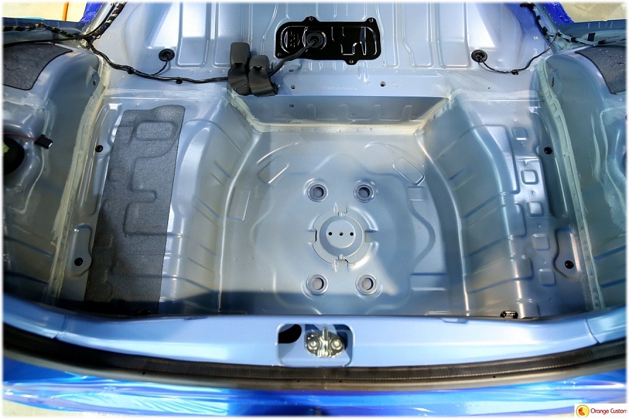 앞좌석 바닥부터 트렁크까지 모든 순정 커버를 걷어내니 철판이 드러납니다.
