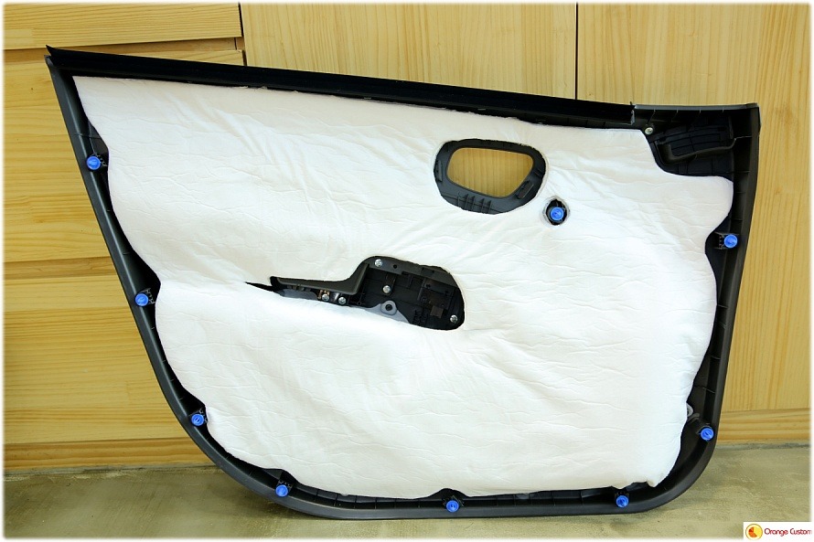 도어모양에 맞춰 직접 재단한 신슐레이터를 도어트림에 듬뿍! 발라주었습니다.