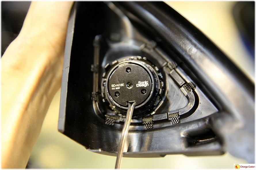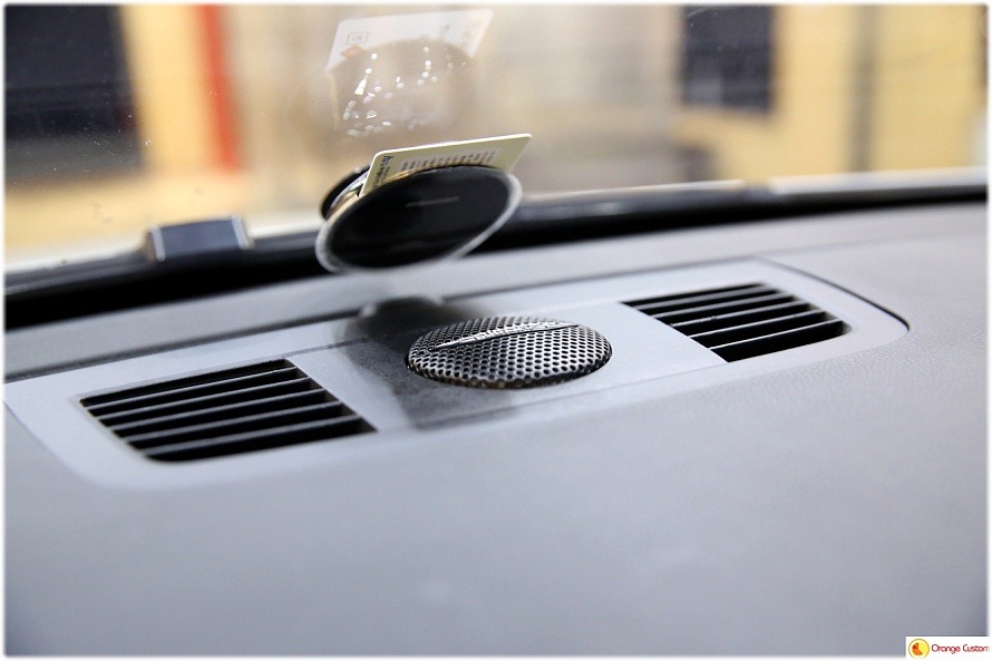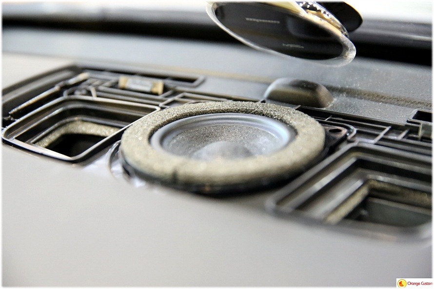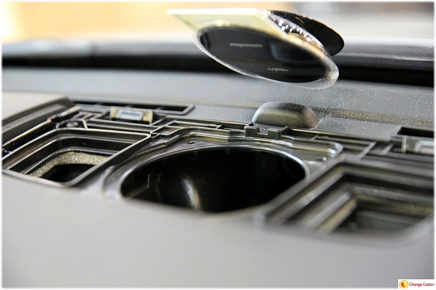 순정 커버를 대신해서 저희 오렌지커스텀에서 직접 제작한 센터 커버를 깔끔하게 닫아주면 센터 스피커 작업완료.