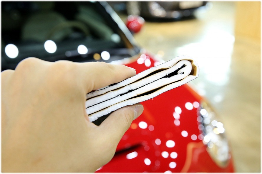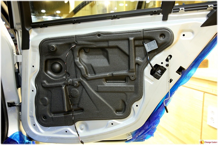 탈거한 도어트림에는 주요부품과 서비스 홀을 피해서 방진작업을 해줍니다.
