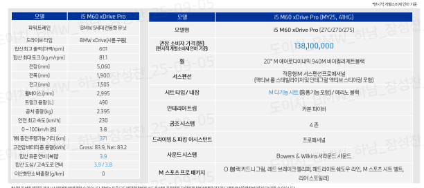 i5 M60 xDrive 2025년 3월~ 생산변경
