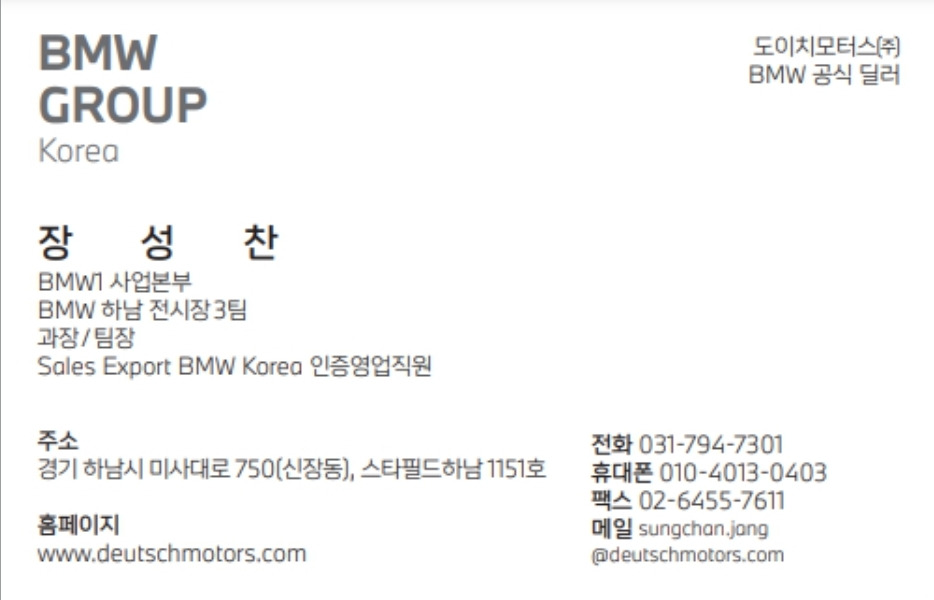 BMW MAANIA 인증딜러 장성찬입니다.