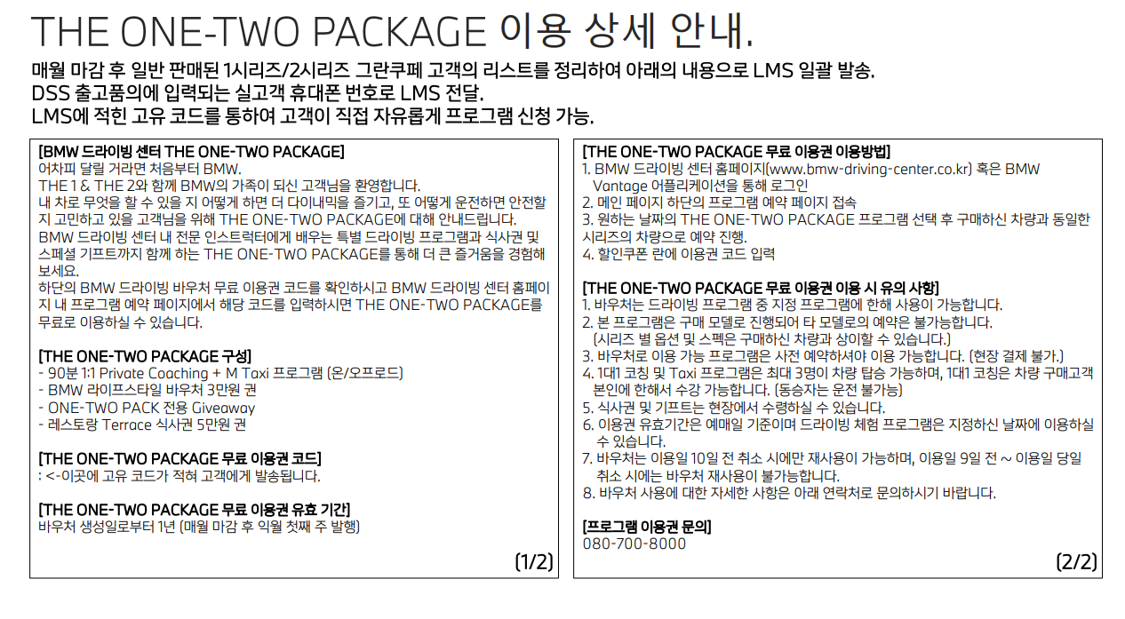 오늘 소개해드릴 내용은 BMW ONE-TWO Package 프로그램입니다.