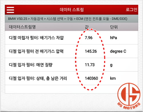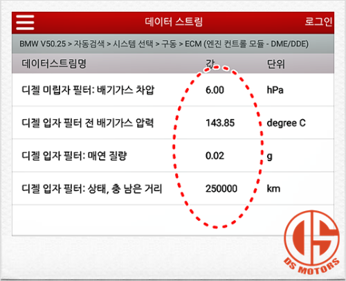 DPF(Diesel Particle Filter: 디젤 입자 필터) 매연 질량이 거의 0으로 줄어들었고,