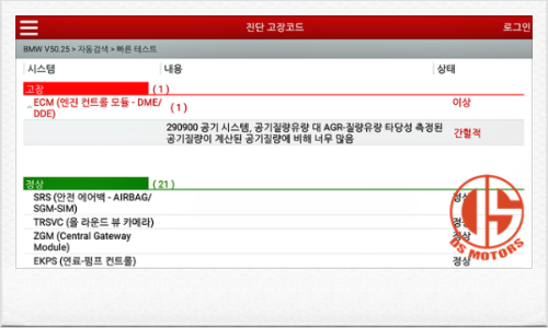 엔진 경고등이 계기판에 점등되어 있어 어떠한 문제가 있겠거니 싶어 진단기를 이용해 확인해보니