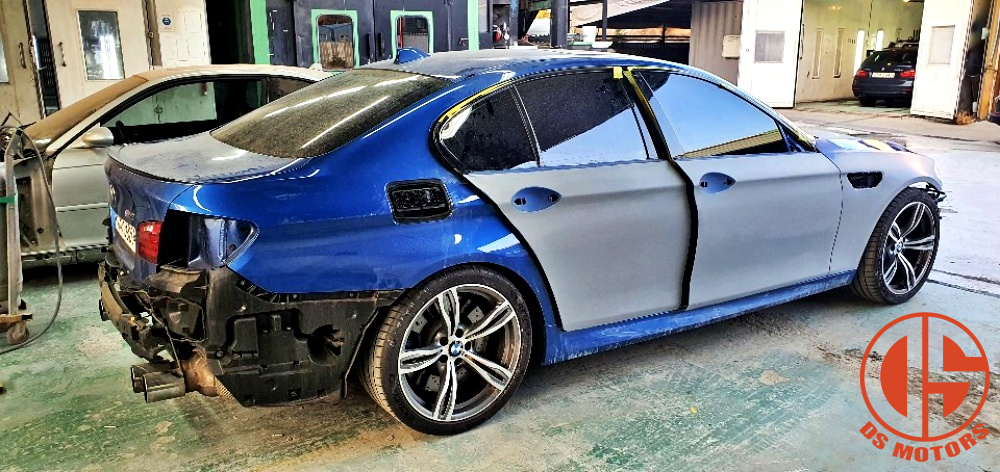 BMW M5 차량 타 업체에서 작업 진행 시 도장면이 일렁이는듯한 현상을 잡지 못하여 복원 수리 맡겨주셨습니다.