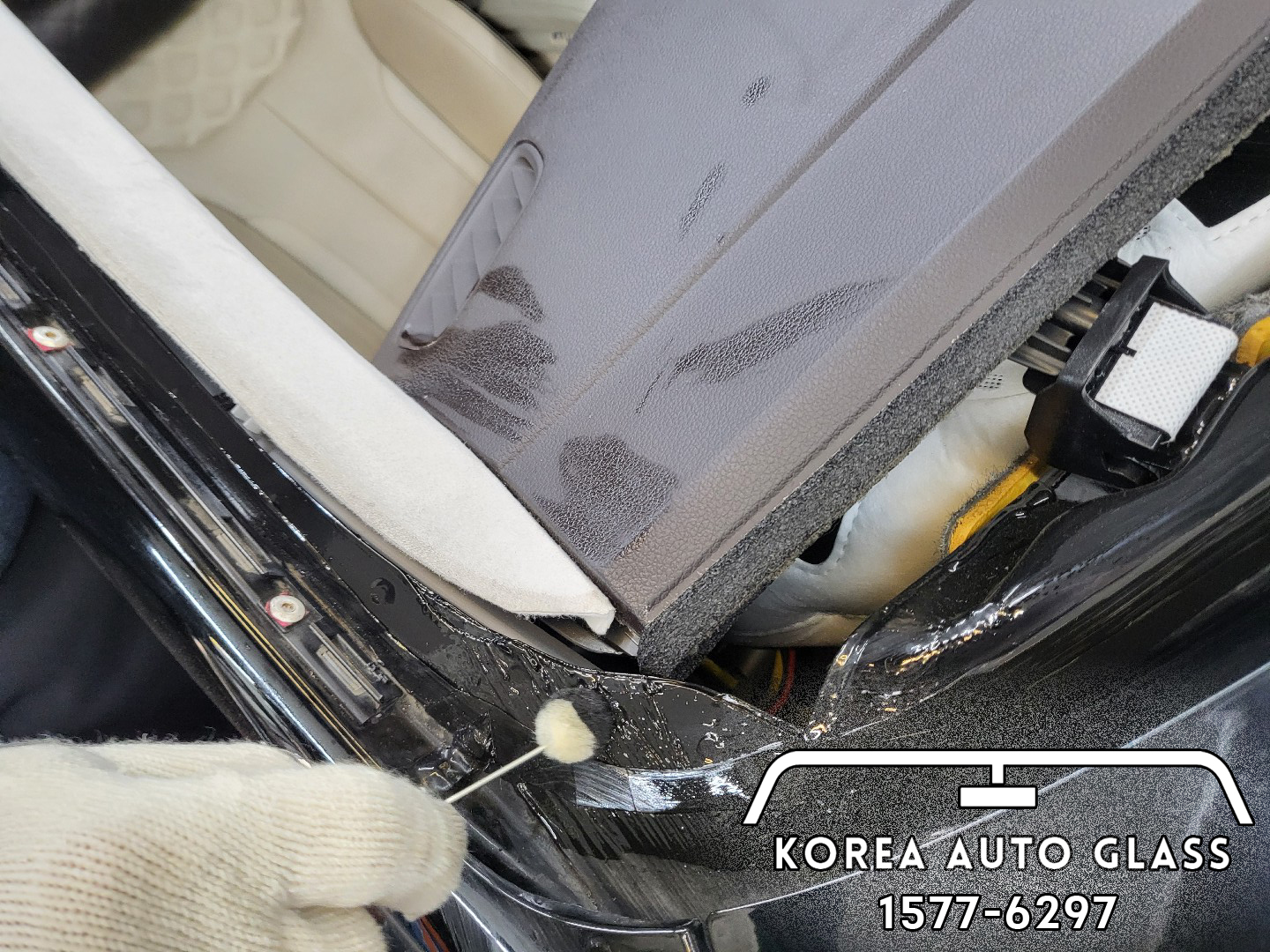 마지막으로 우레탄 실란트를 유리에 도포합니다