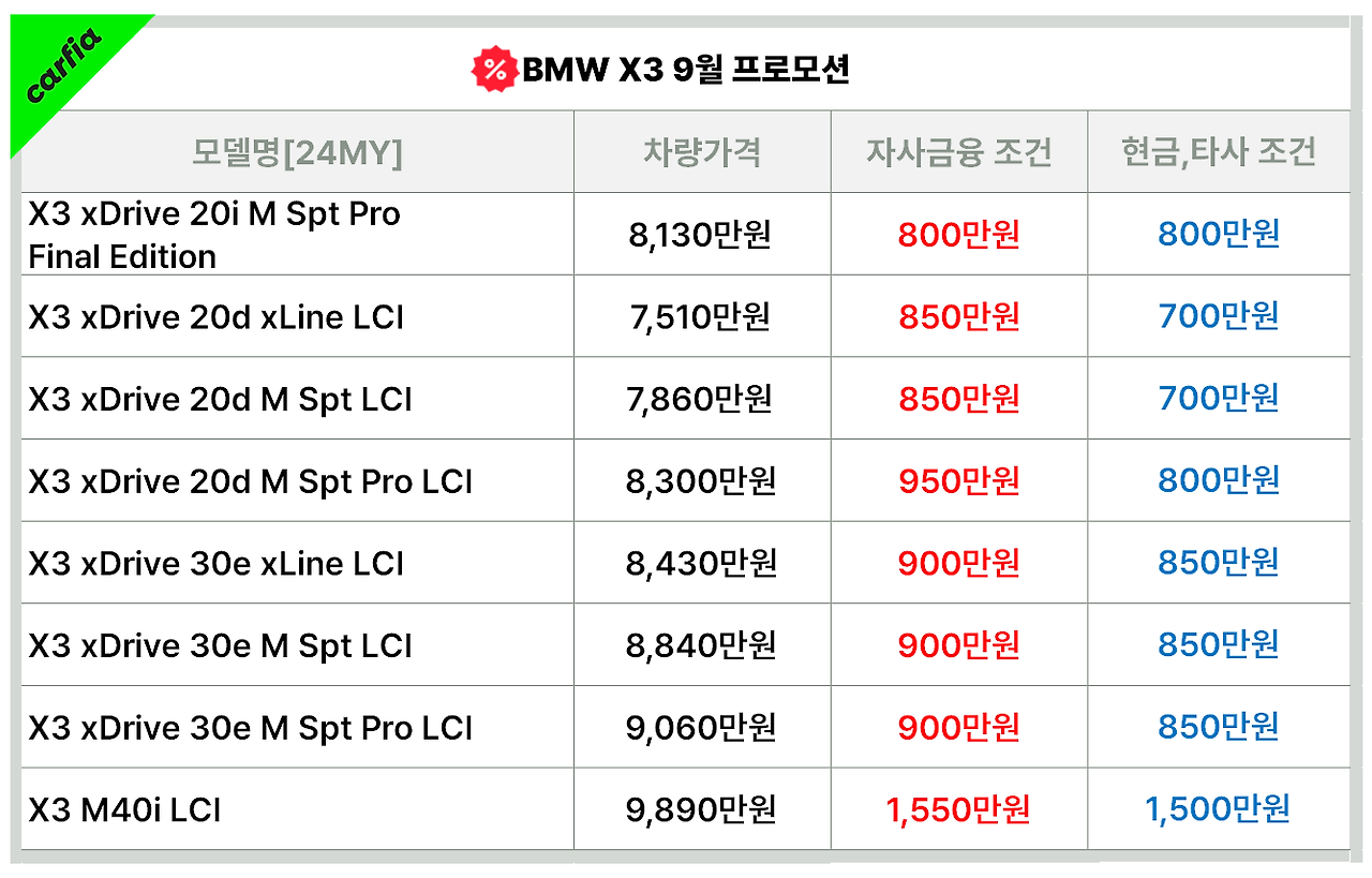 - BMW X3M ~X6M & XM 9월 프로모션 -