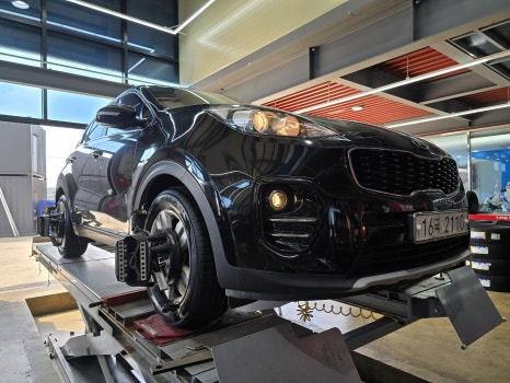 휠얼라인먼트 기계를 이용해 차륜을 정렬해줍니다.