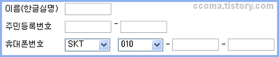 | 회원가입시 자주 보는 입력화면 |