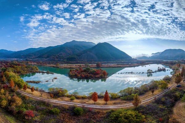 진안 용담호는 그 이름처럼 용이 꿈틀대는 듯한 형상을 자랑하는 곳으로, 사시사철 아름다운 경관을 선보이고 있다.