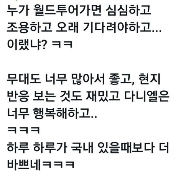 강행군으로 무대서는 다니엘도 대단하고 같은 동선으로 가시는 한국 팬분들도 대단하시고